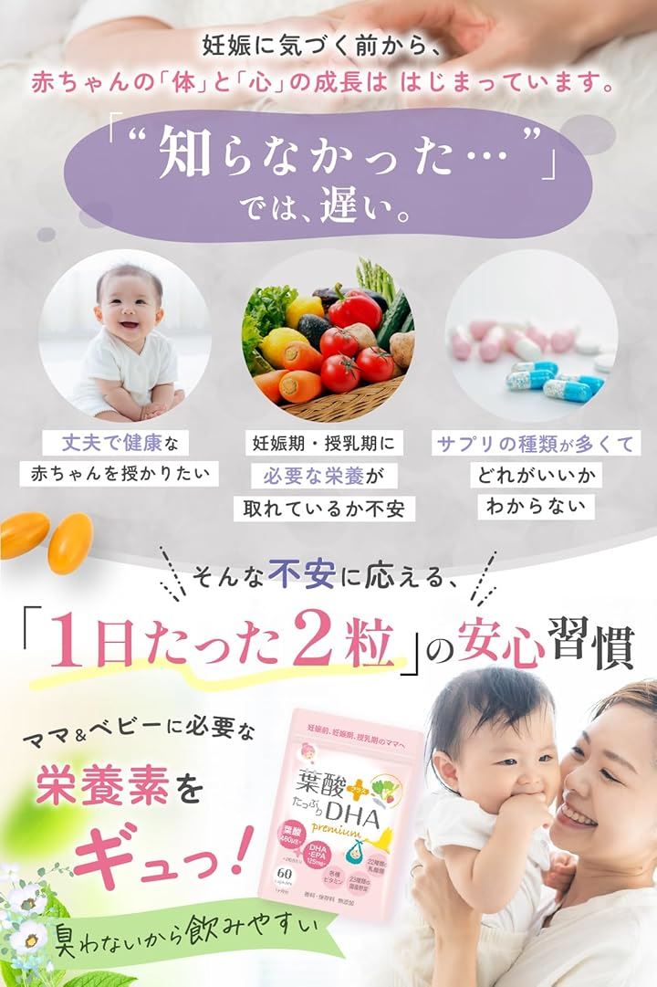 最近話題のオメガ3脂肪酸やプロバイオティックを配合することで、葉酸以外に摂取すべき栄養素を簡単にこれひとつで取り入れることができます。