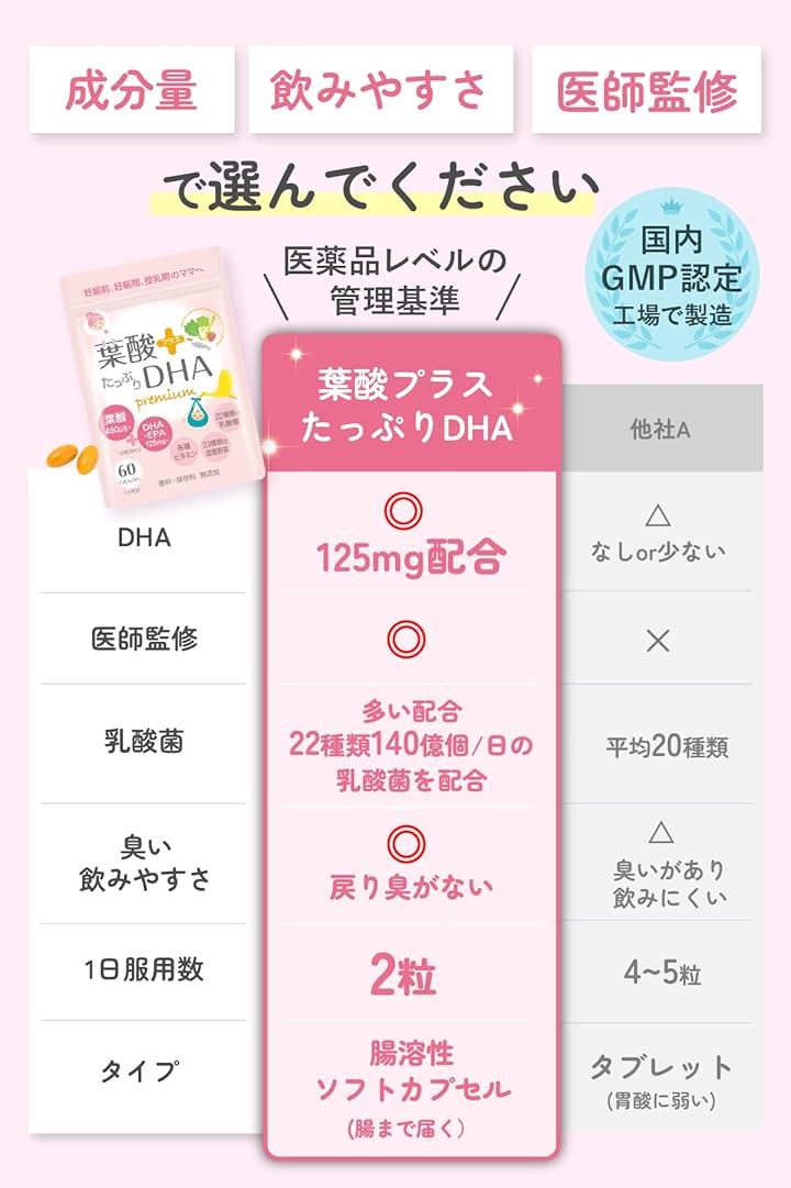 葉酸やDHAサプリで臭いや味覚を調整するため使われがちな成分も一切使用していません。