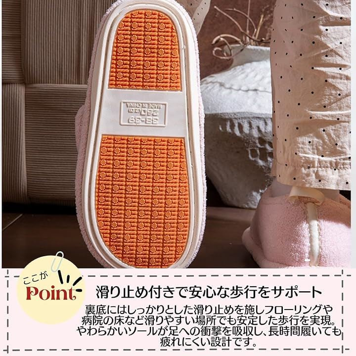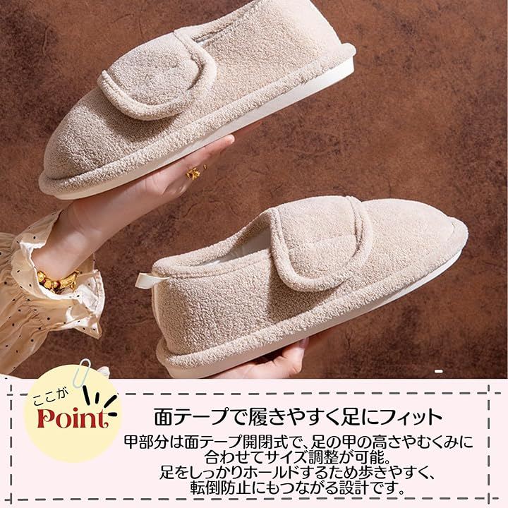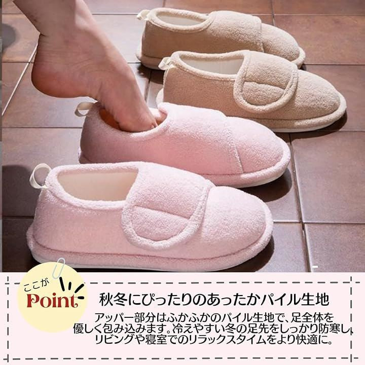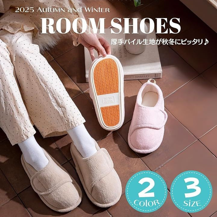 ルーム シューズ スリッパ 室内履き かかと あり インドア 面テープ 開閉 滑り止め 付き パイル タオル 生地 入院 介護 レディース スリップ オン ホーム ハウス オフィス ビジネス