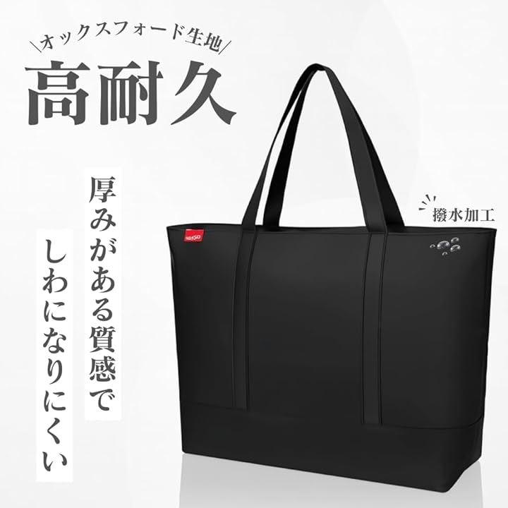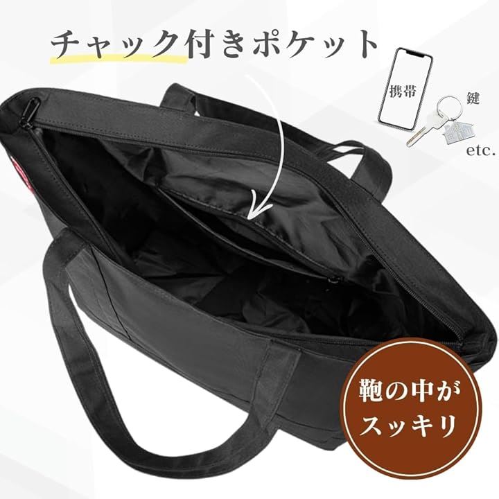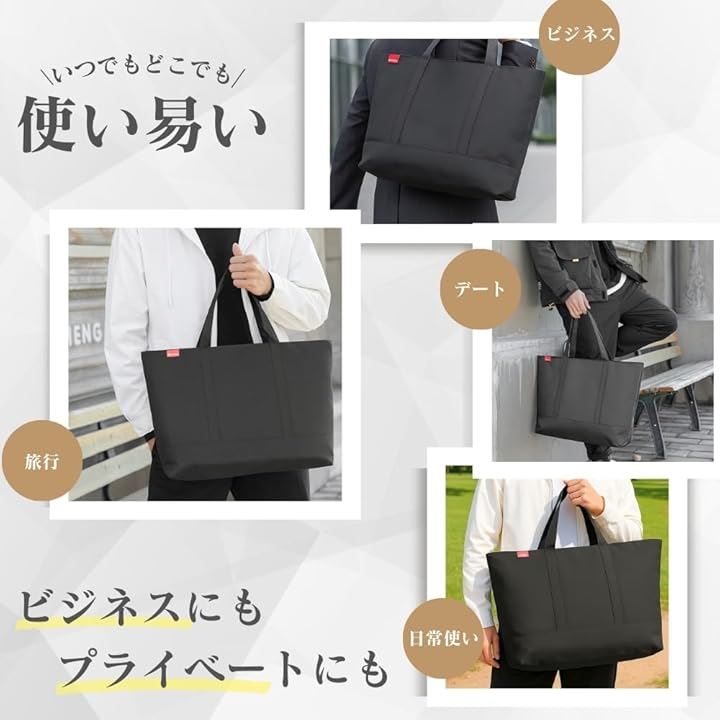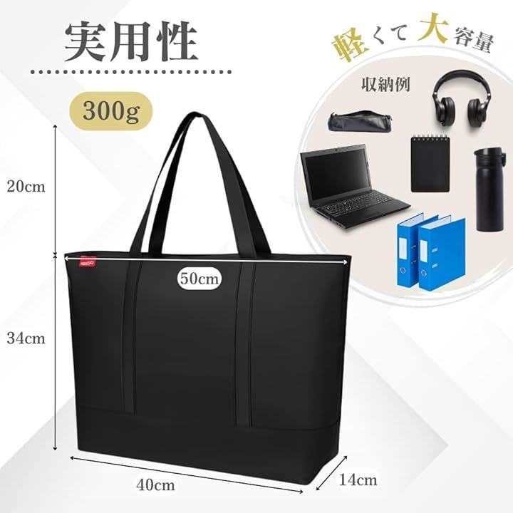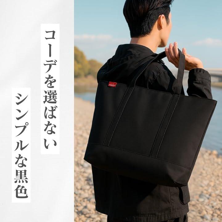 トートバッグ メンズ 大容量 A4対応 ファスナー付き 無地 黒 高耐久 オックスフォード生地
