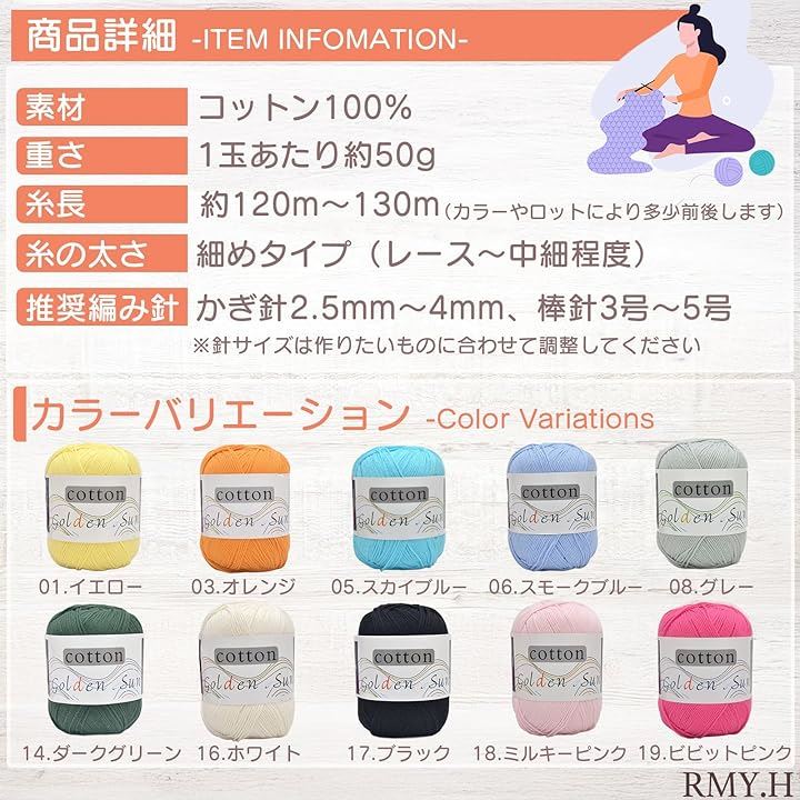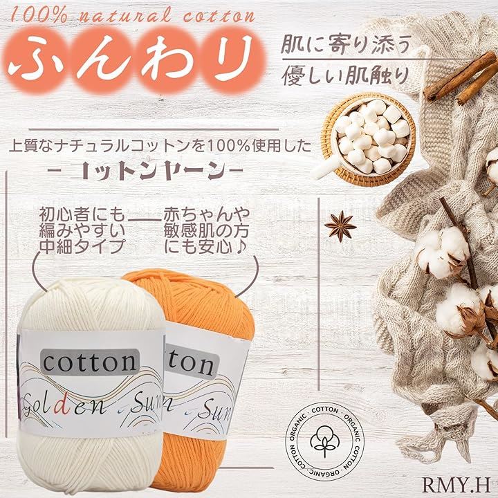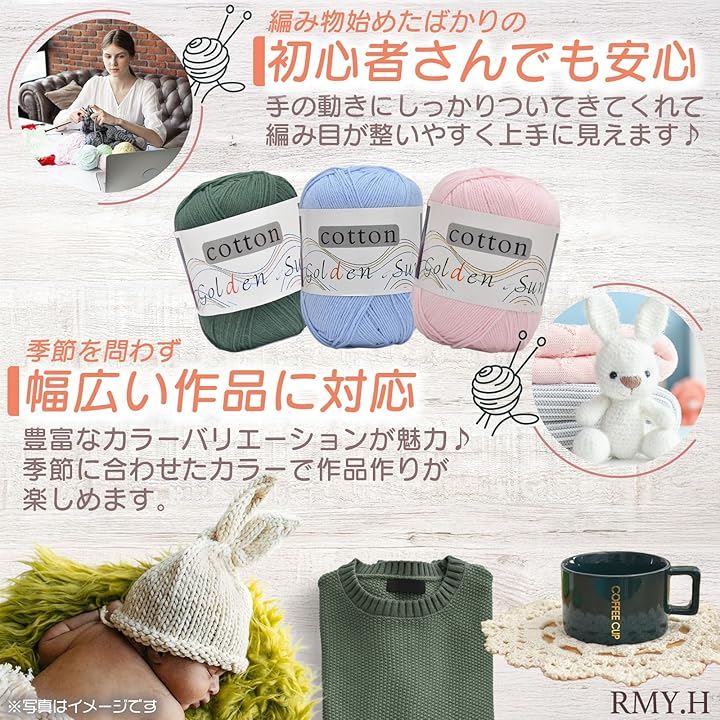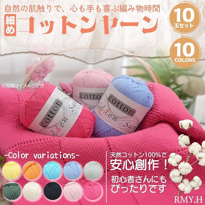 コットンヤーン 中細 毛糸 50g 120m 10玉セット かぎ針編み 編み物