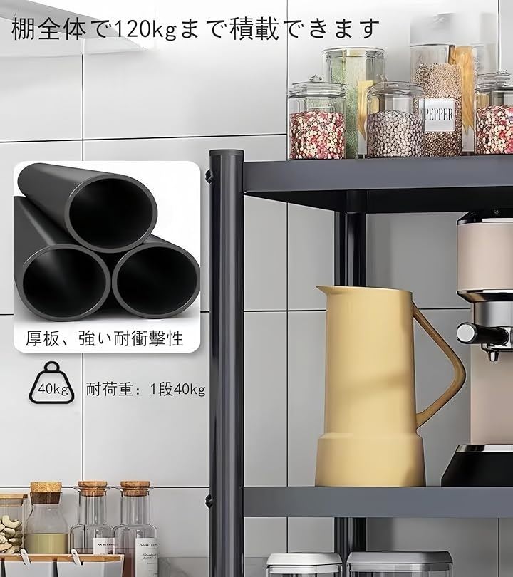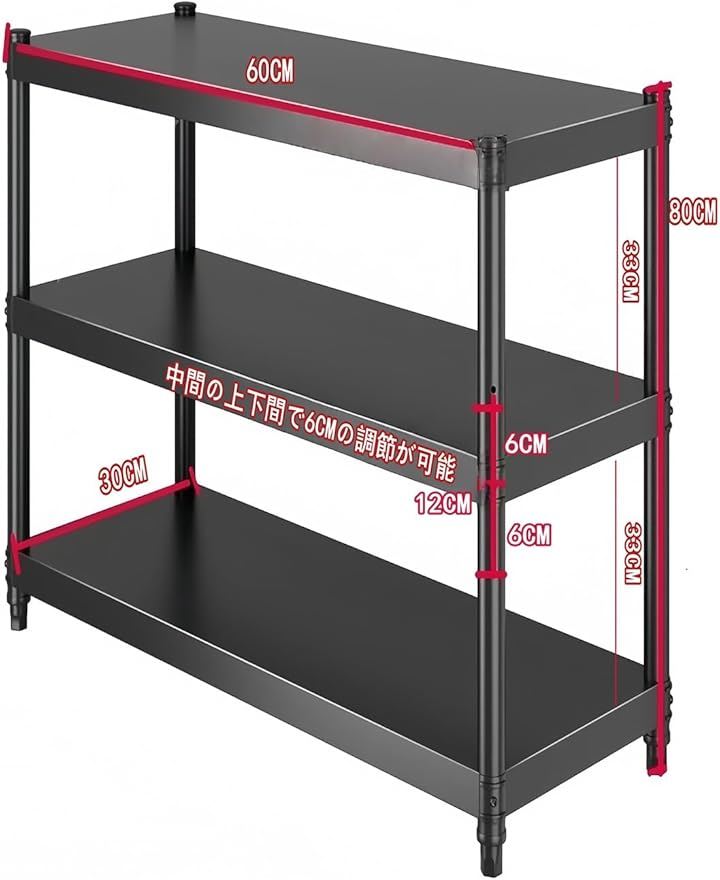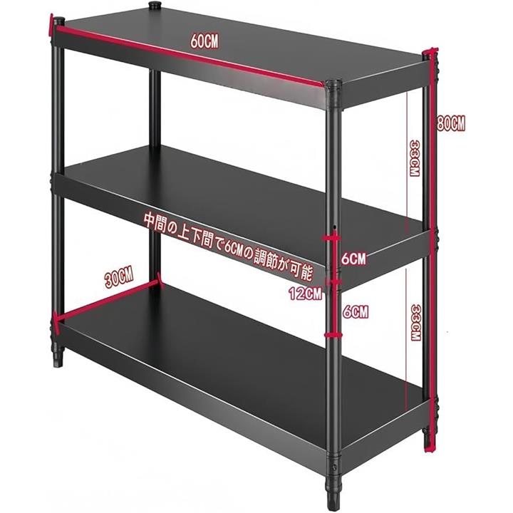 スチールラック 棚 高さ調整可能 組立簡単 3段ラック 収納棚 すき間収納 キッチンラック 食器棚 家電や器具収納 倉庫 オフィス 業務用 錆び防止 耐摩擦性