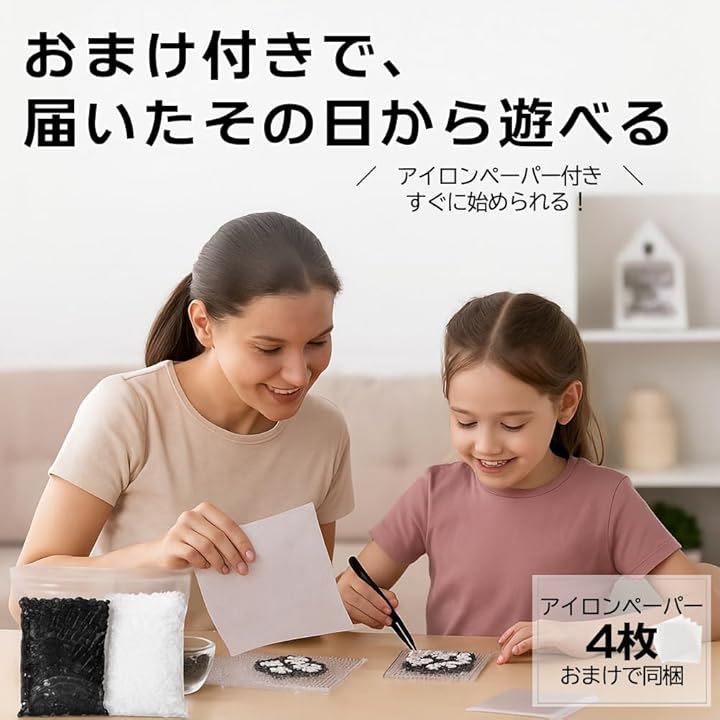 アイロンビーズ 大容量 5mm 約8000粒 アイロンペーパー 付き 4枚 手芸 補充 工作 用 セット