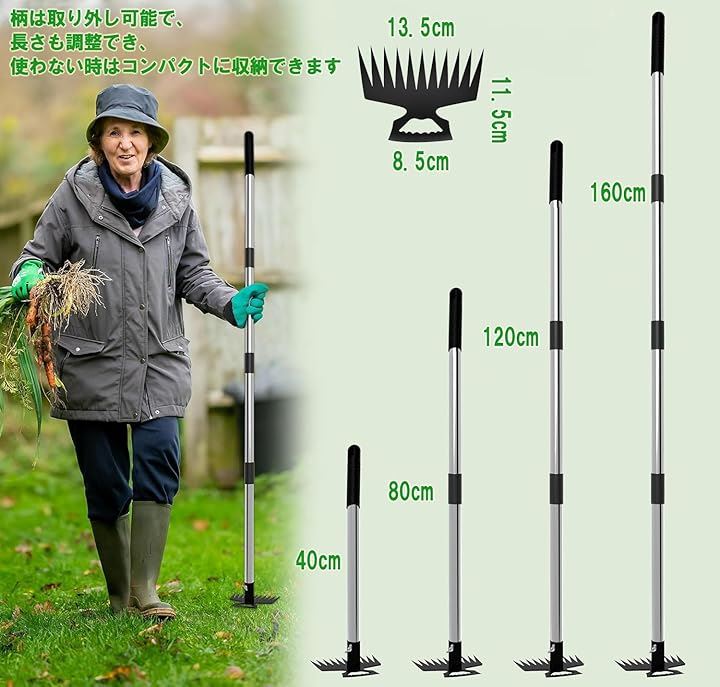 雑草取り器具 80cm/120cm/160cm 草取り道具 根こそぎ レーキ 除草 草刈りレーキ/鍬 草削り 立ったまま 庭 の 雑草むしり らくらく
