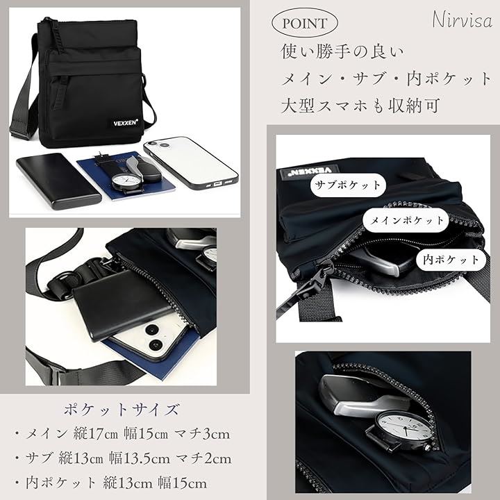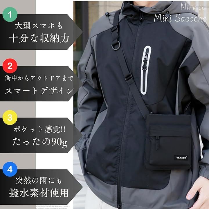 サコッシュ メンズ 小さめ ショルダーバッグ 軽量 撥水 縦型 大型画面スマホ対応