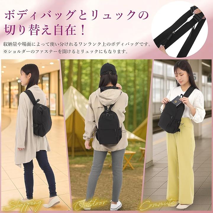 ボディバッグ メンズ レディース ショルダーバッグ 2way リュックにもなる 大容量 軽量 おしゃれ 斜めがけ 通勤 旅行 アウトドア