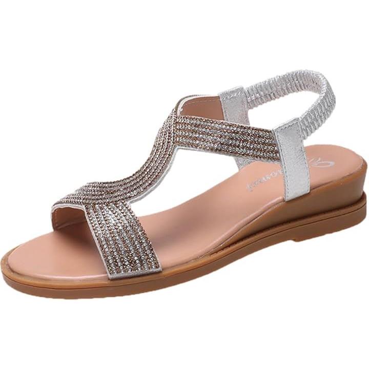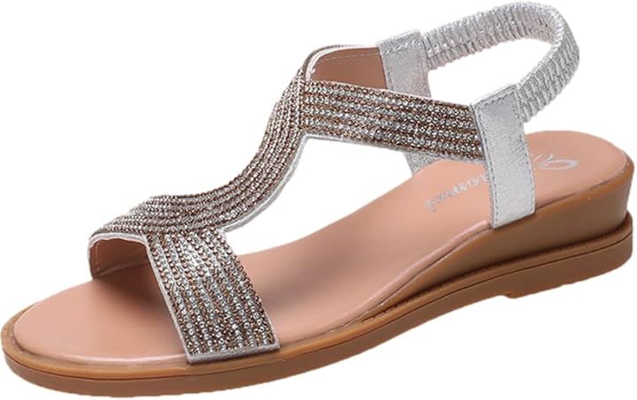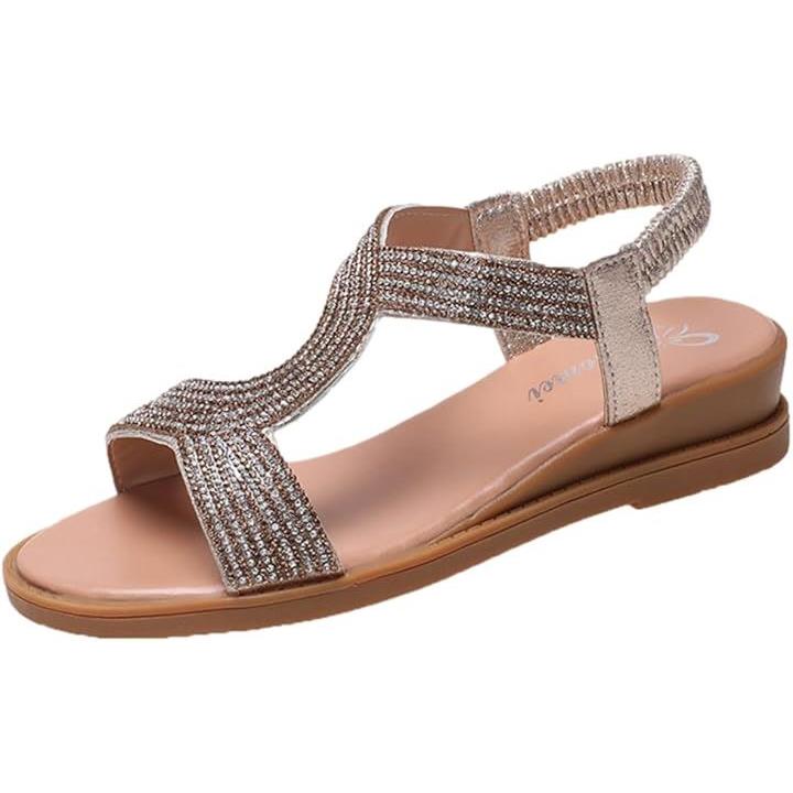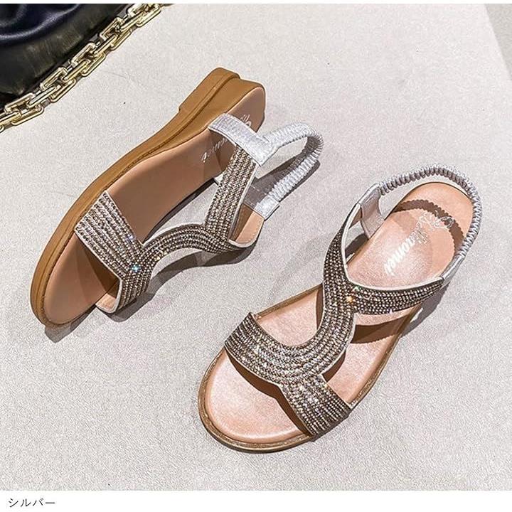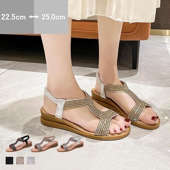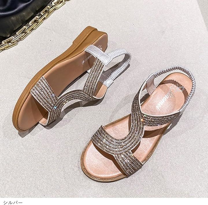 [Lopis] 美脚 サンダル レディース キラキラ シューズ 軽量 ラメ 靴 フラット おしゃれ エレガント 痛くない 疲れない 歩きやすい |