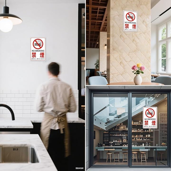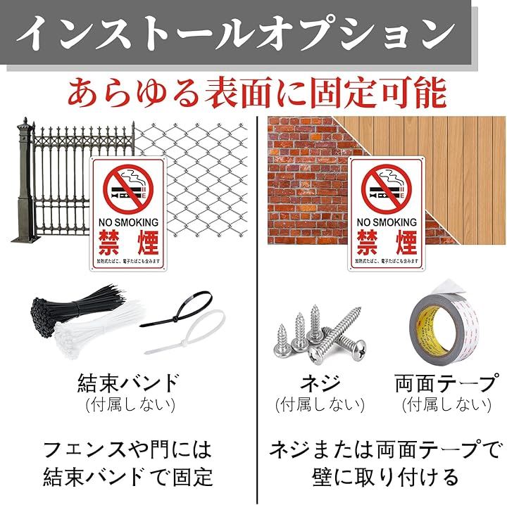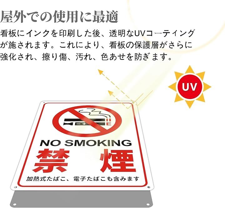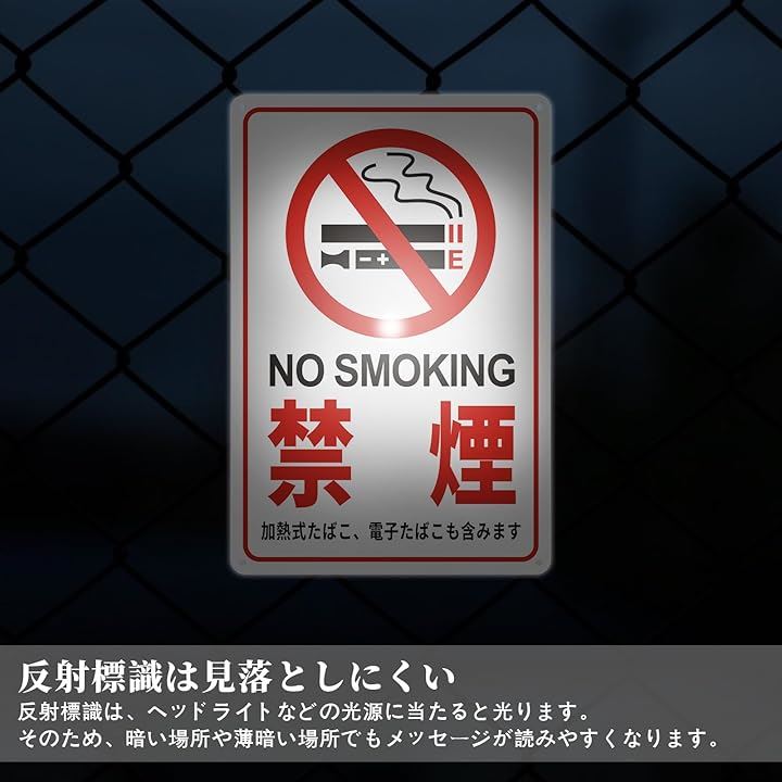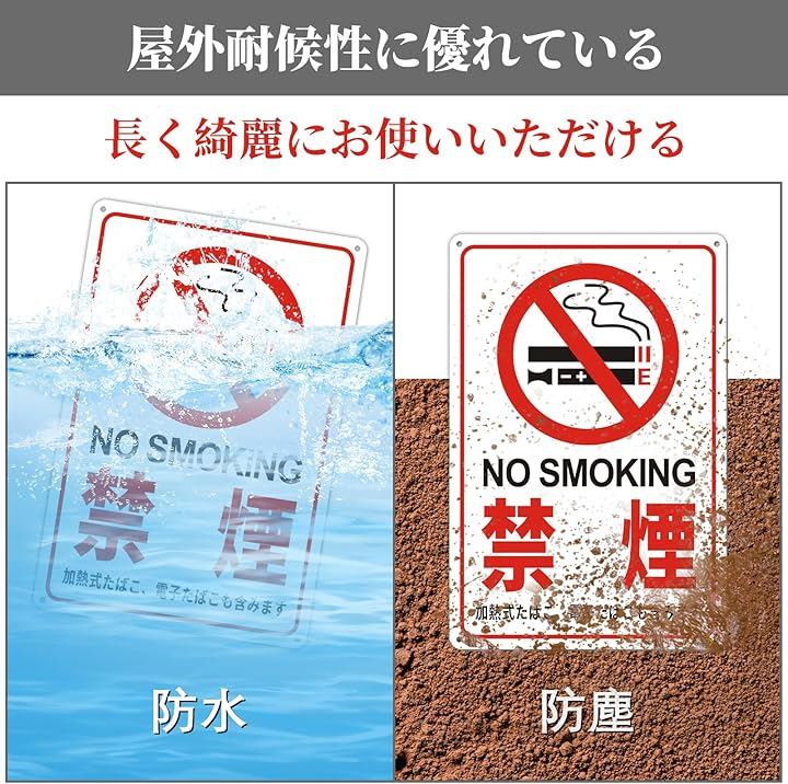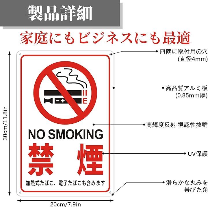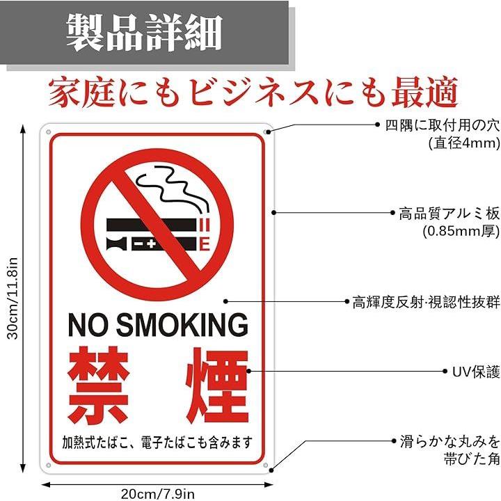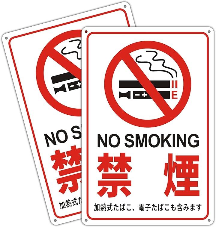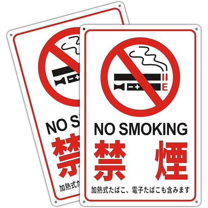 禁煙 看板 No Smoking 警告プレート サインプレート 禁煙ステッカー 標識 20x30cm アルミ製 穴あけ加工 反射機能付き 防水 屋内外両用 2枚セット