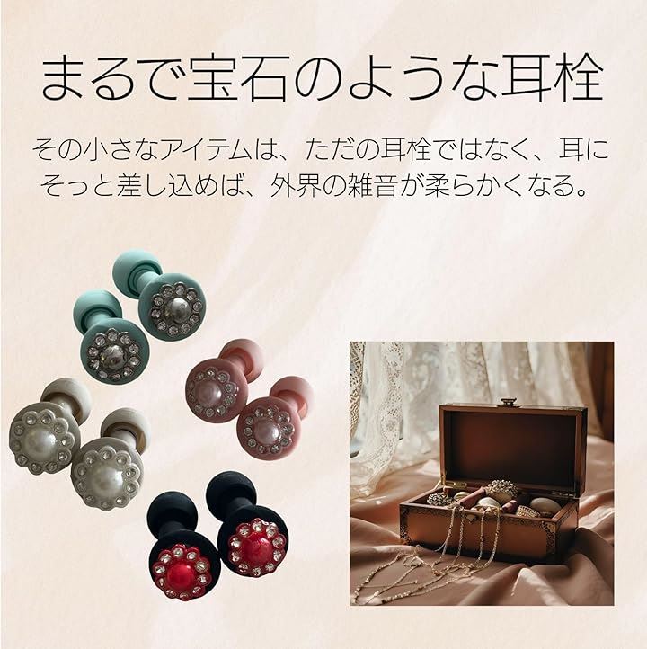 ジュエリーのような耳栓女性用 小さいサイズ 交換イヤーチップXS/S/M仕事 勉強 旅行 騒音 聴覚過敏 HSP −33dB おしゃれ かわいい