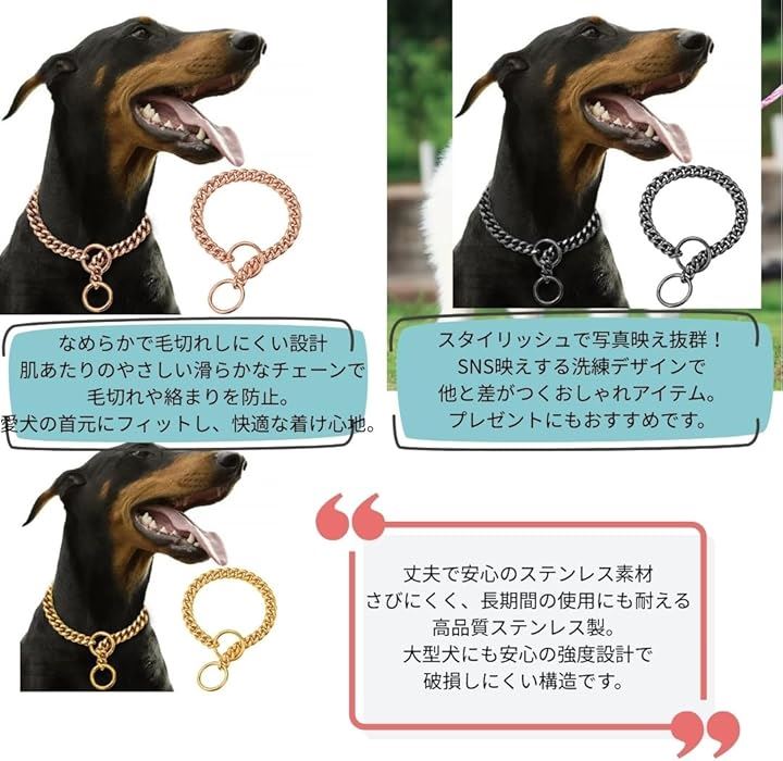 犬 ペット チェーン 首輪 チョーク 式 ステンレス カラートレーニング ひっぱり しつけ