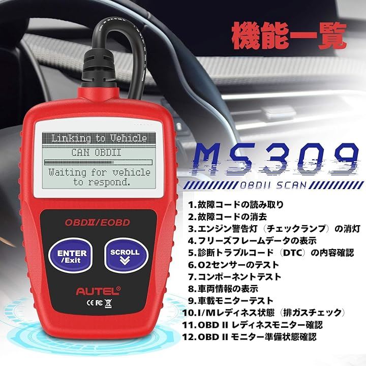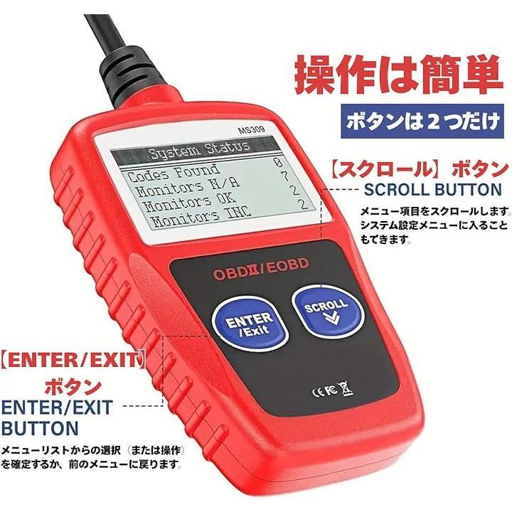 OBD2診断機 故障診断機 日本語 チェックエンジンライト DTC定義/コード消去 スキャンツール 車用 エンジンチェックランプ