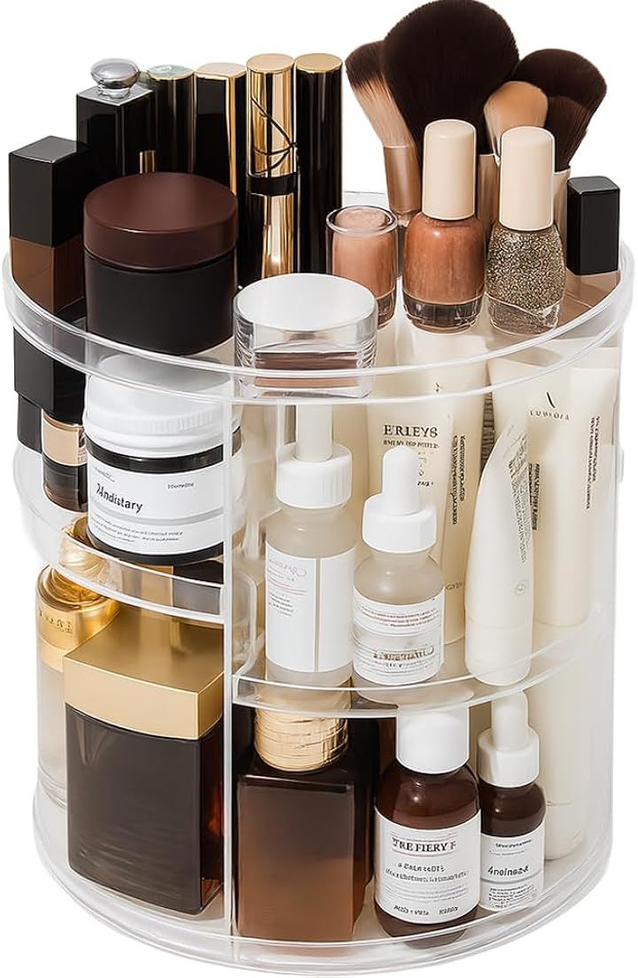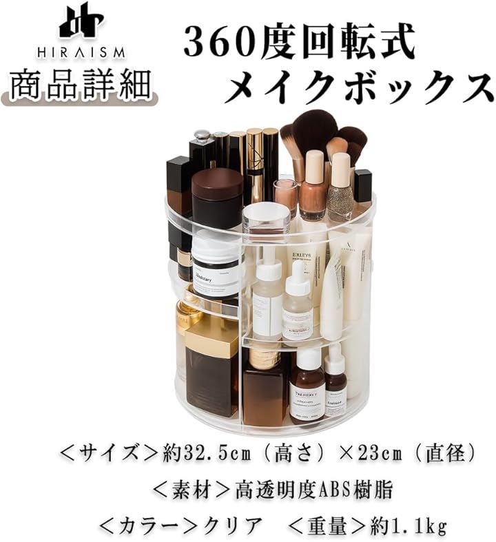 コスメ収納 360度回転式 メイクボックス 大容量 仕切り付き 小物入れ アクリル 透明 おしゃれ 化粧品収納