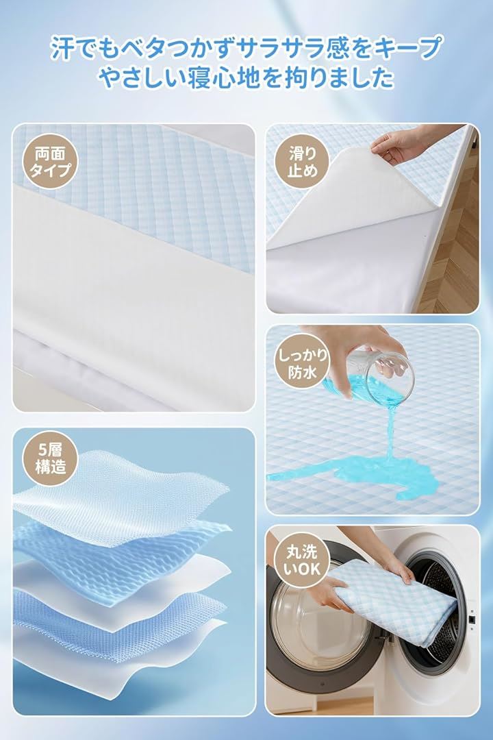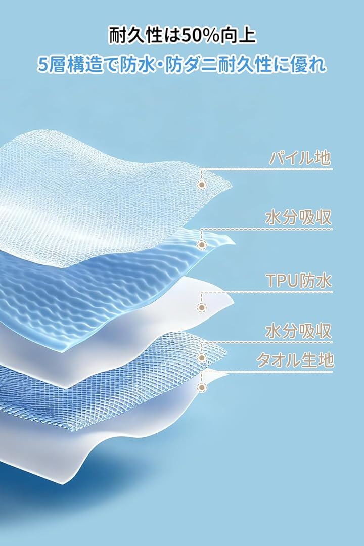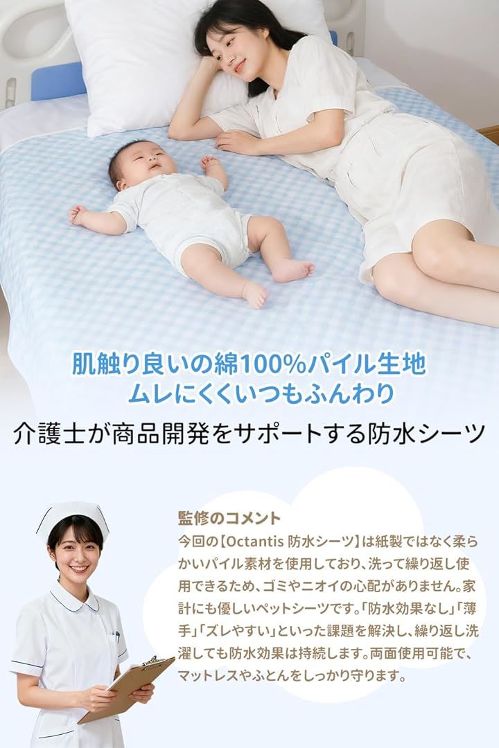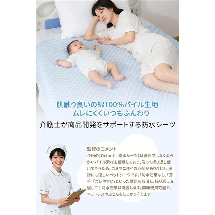 介護士監修 両面タイプOctantis 防水シーツ 部分用 綿100% 防ダニ 5層構造 耐久性約3倍 半身用タイプ 強力防水