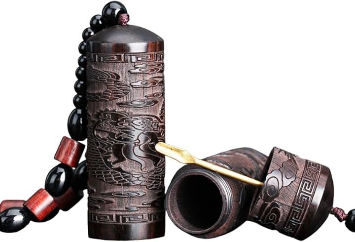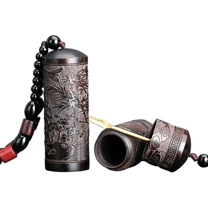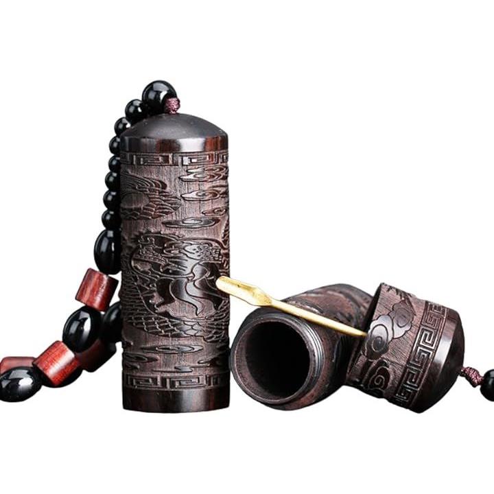 塗香入れ 和柄線香ケース 携帯 持ち運び お香 ずこう 黒檀 薬さじ付き
