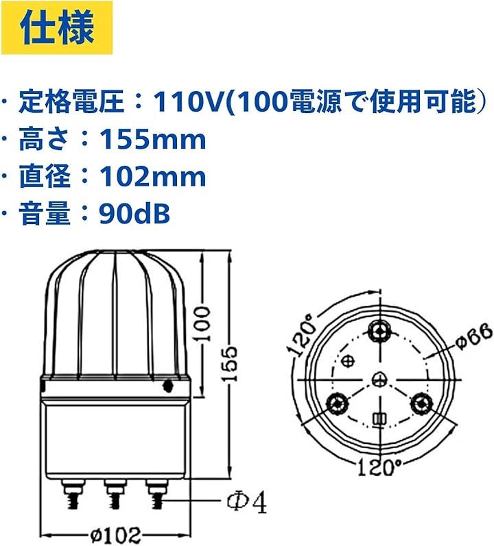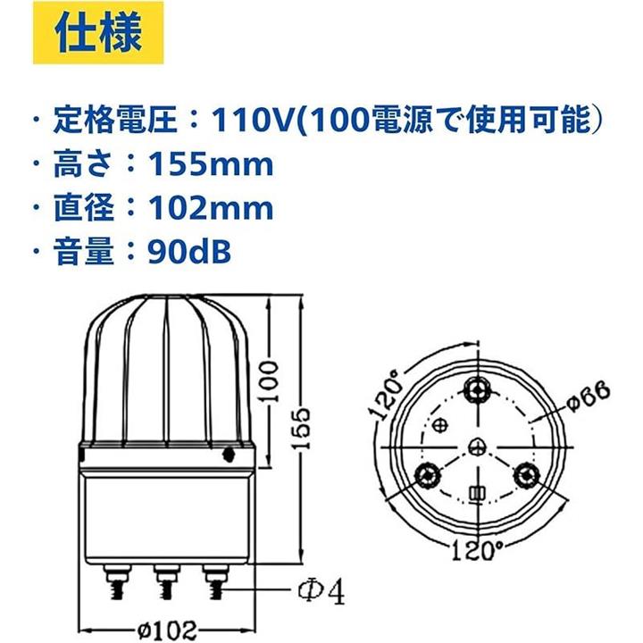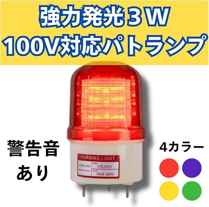 パトランプ LED 100V 対応 3W 強力LED 音あり 取付金具付き ストロボライト 工場