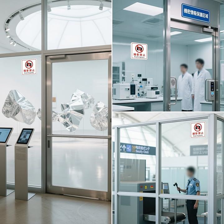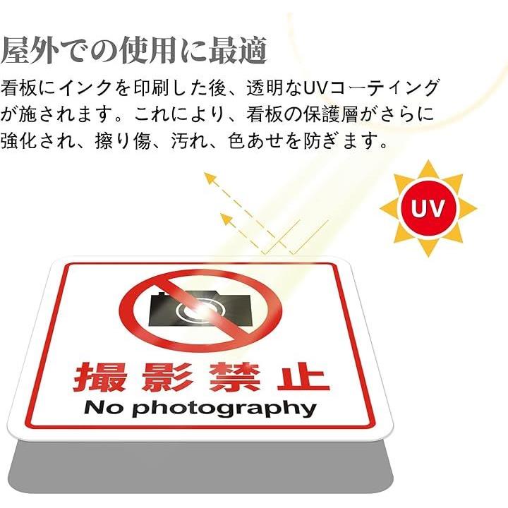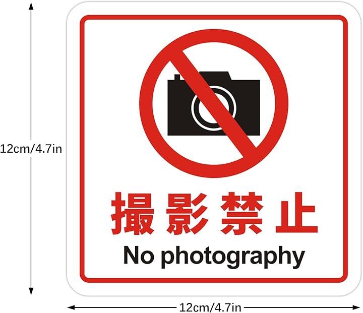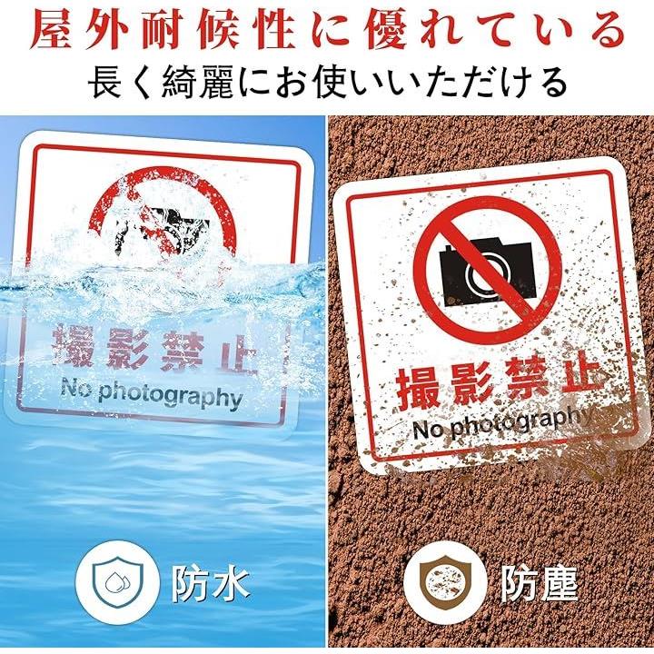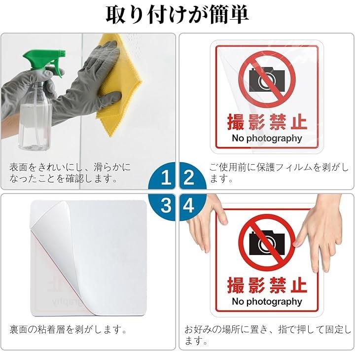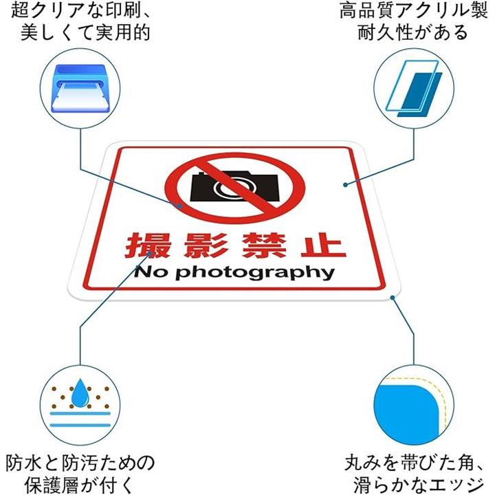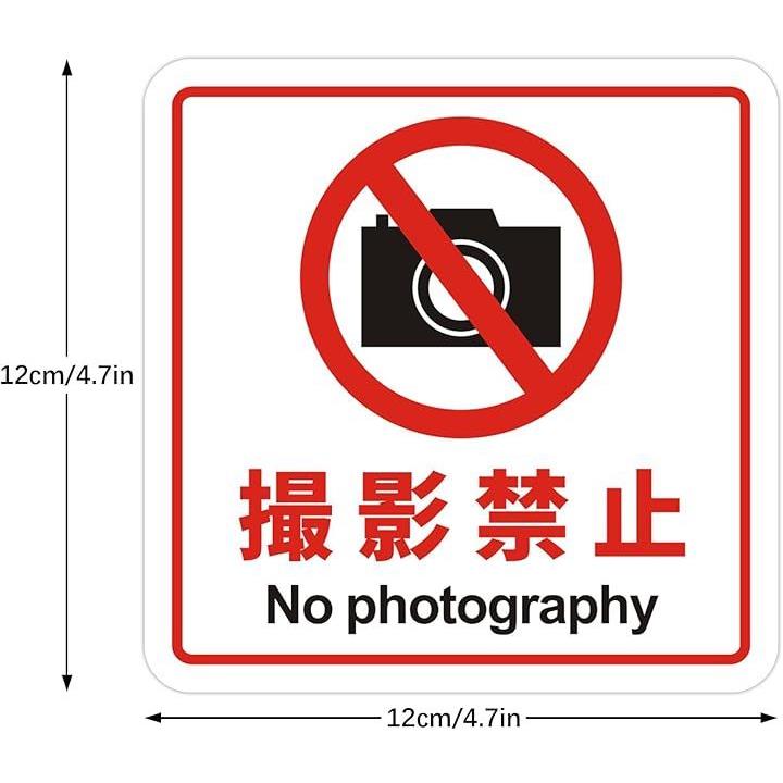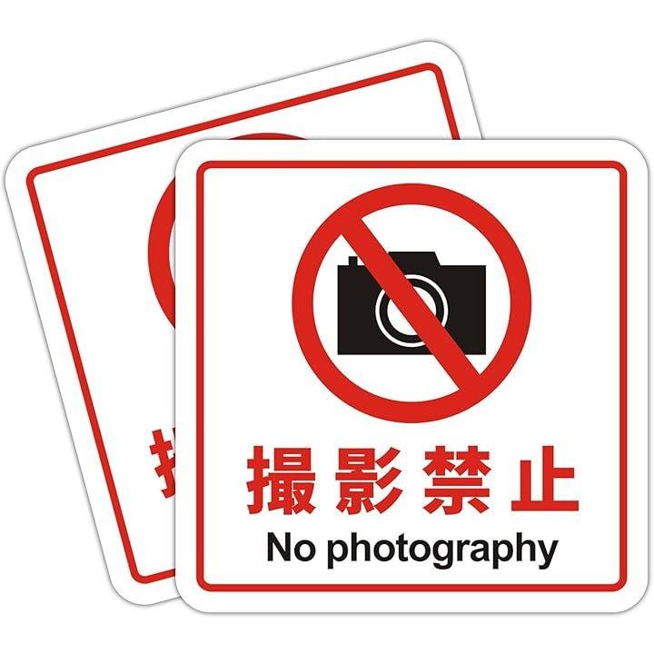 撮影禁止 看板 No photography 警告プレート サインプレート ステッカー 標識 12x12cm アクリル製 取付簡単 UV印刷 防水 屋内外両用 2枚入り