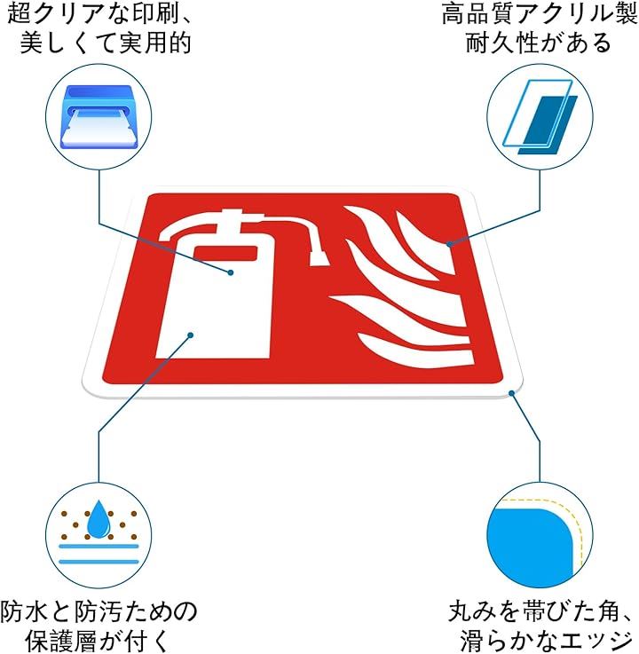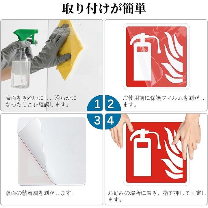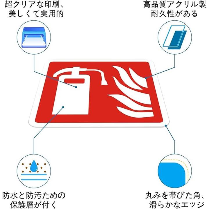 消火器 看板 サインプレート ステッカー 消防標識 12x12cm アクリル製 取付簡単 UV印刷 防水 屋内外両用 2枚入り