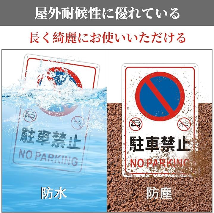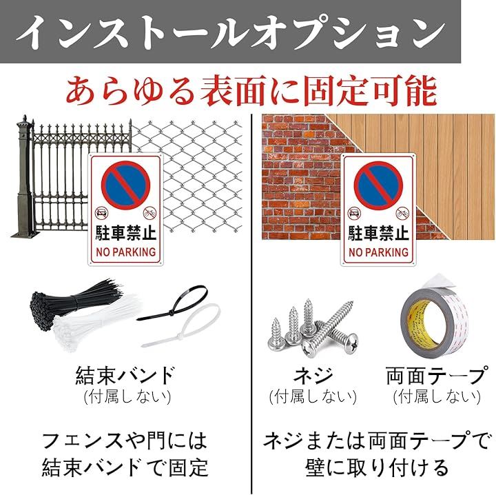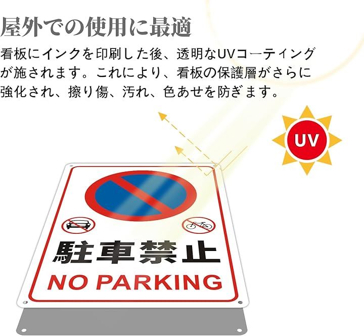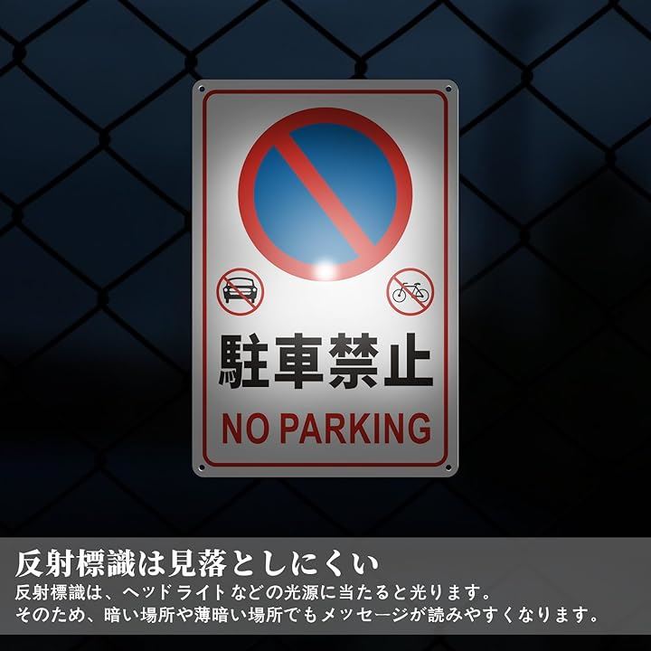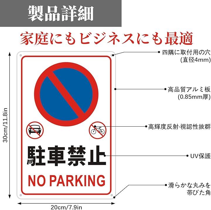 駐車禁止 看板 NO PARKING 無断駐車厳禁 警告プレート サインプレート ステッカー 安全標識 20x30cm アルミ製 穴あけ加工 反射機能付き 防水