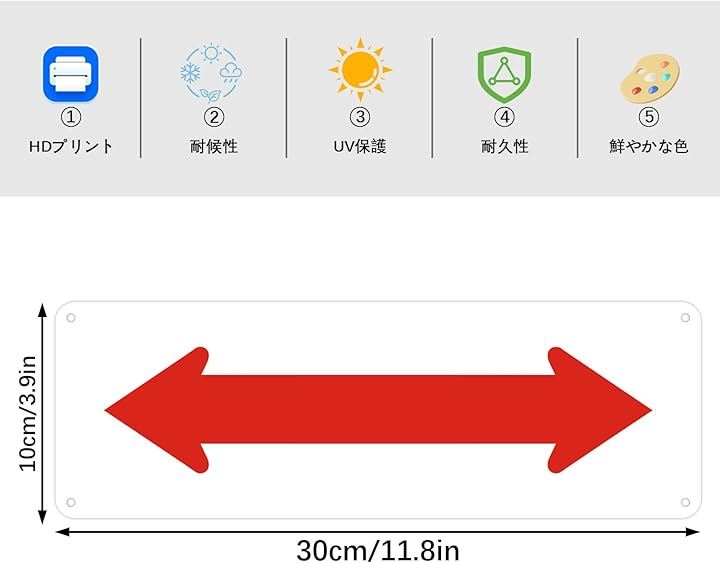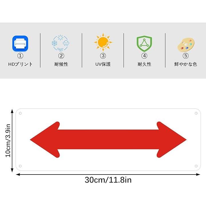 矢印 看板 サインプレート ステッカー 両方向矢印サイン 30x10cm アルミ製 穴あけ加工 反射機能付き 防水 屋外庭園地面装飾用 2枚入り