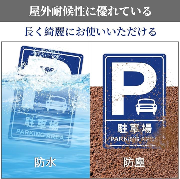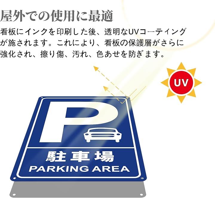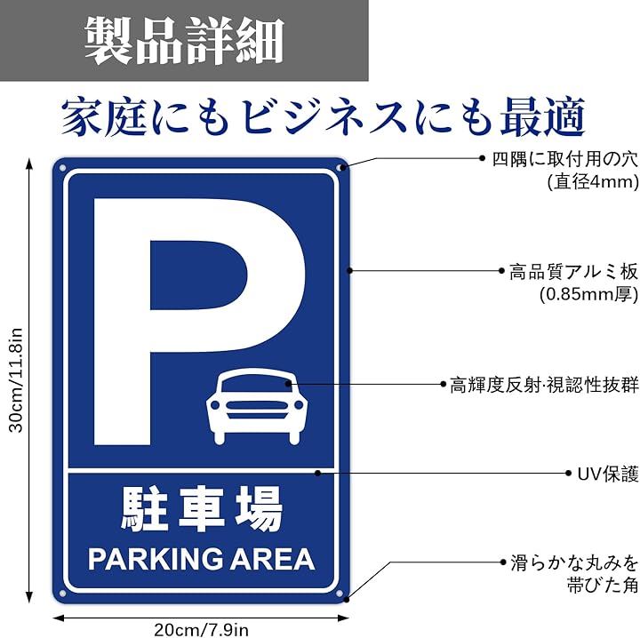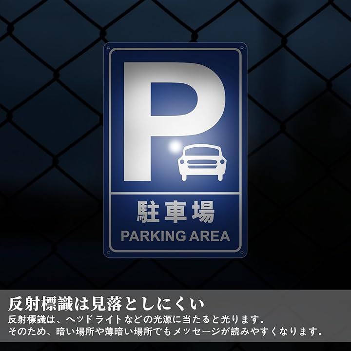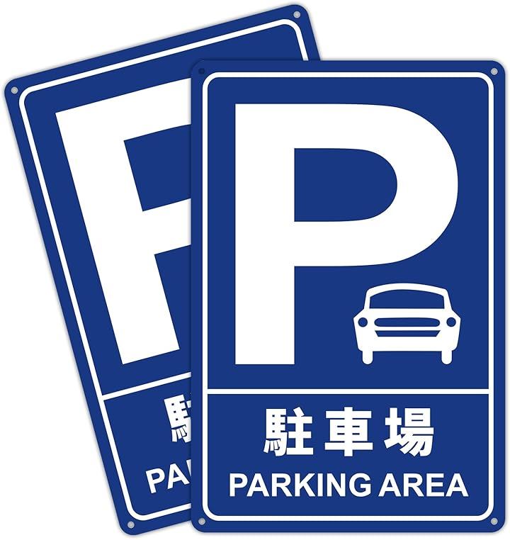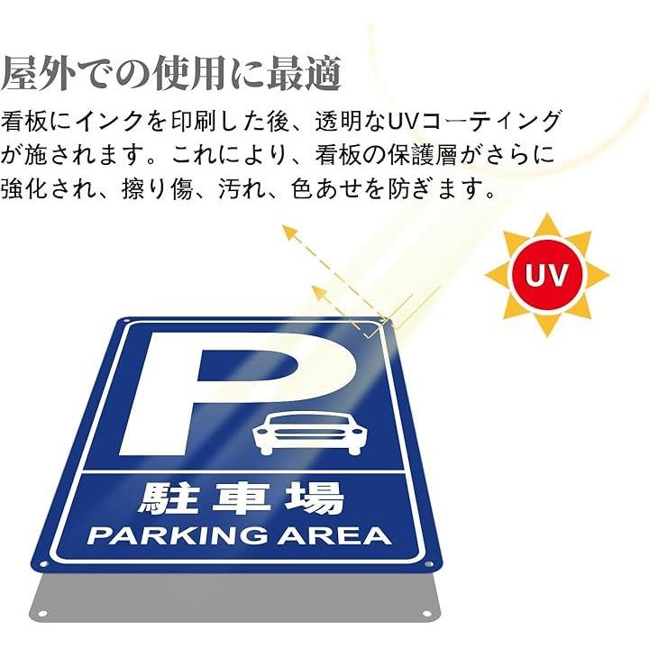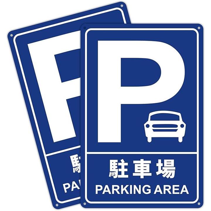 駐車場 看板 PARKING AREA 注意プレート サインプレート ステッカー 案内標識 20x30cm アルミ製 穴あけ加工 反射機能付き 防水 屋内外両用 2枚入り
