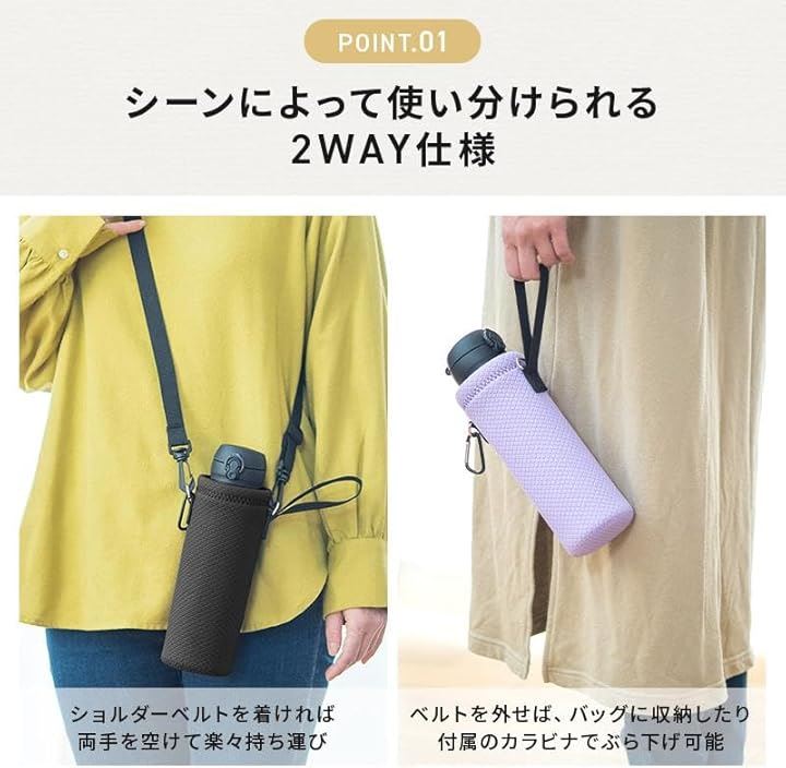 水筒カバー ボトルカバー ショルダー付き 500ml 600ml 750ml 子供 大人 肩掛け ペットボトルカバー 小学生 カラビナ 通勤 通学 水筒ケース