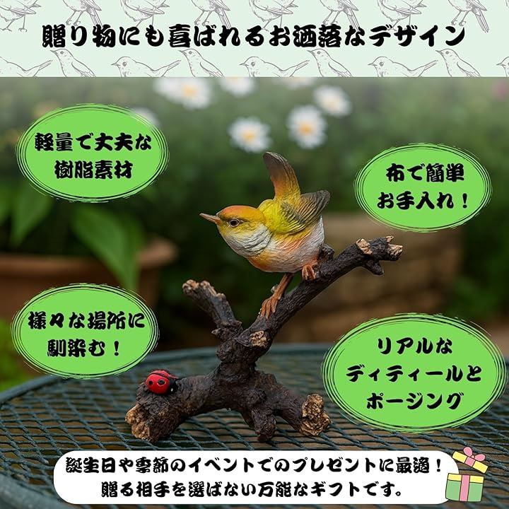 鳥 とり オブジェ ガーデニング インテリア 庭 置物 リアル 動物 鶯 小鳥