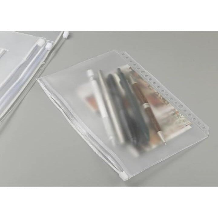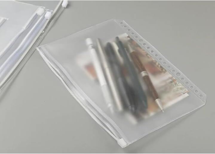 クリアポケット B5 26穴 ルーズリーフ対応 ファスナー付き PVC 透明 5枚セット|レシート 現金 チケット カード 収納 整理 家計管理