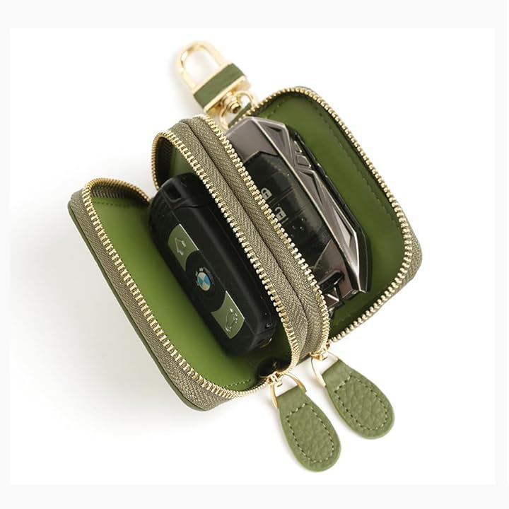 本革 スマートキーケース 2個収納 レディース メンズ ダブルファスナー