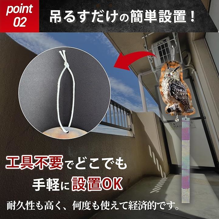 鳩よけ 鳥よけ 鳥よけグッズ はとよけ ベランダ 鳩よけグッズ カラスよけ 吊り下げ式 設置簡単 鳥除け 鳥害対策 フクロウ 防鳥グッズ 鳥糞対策