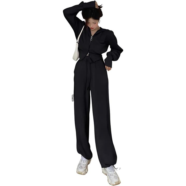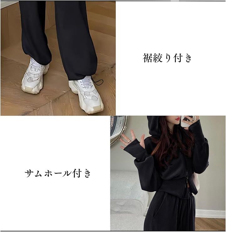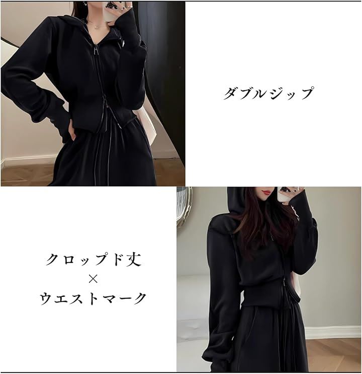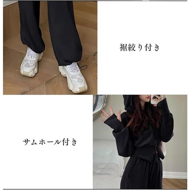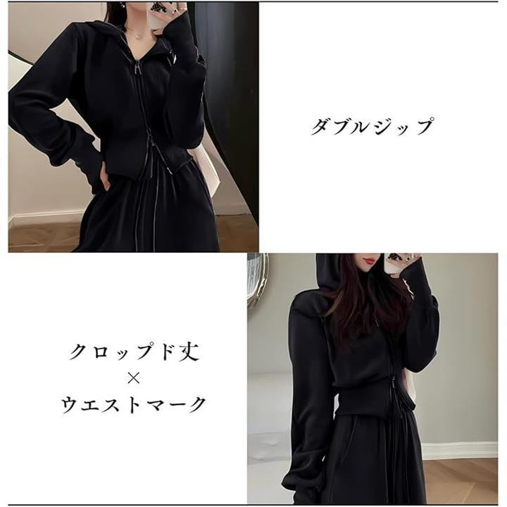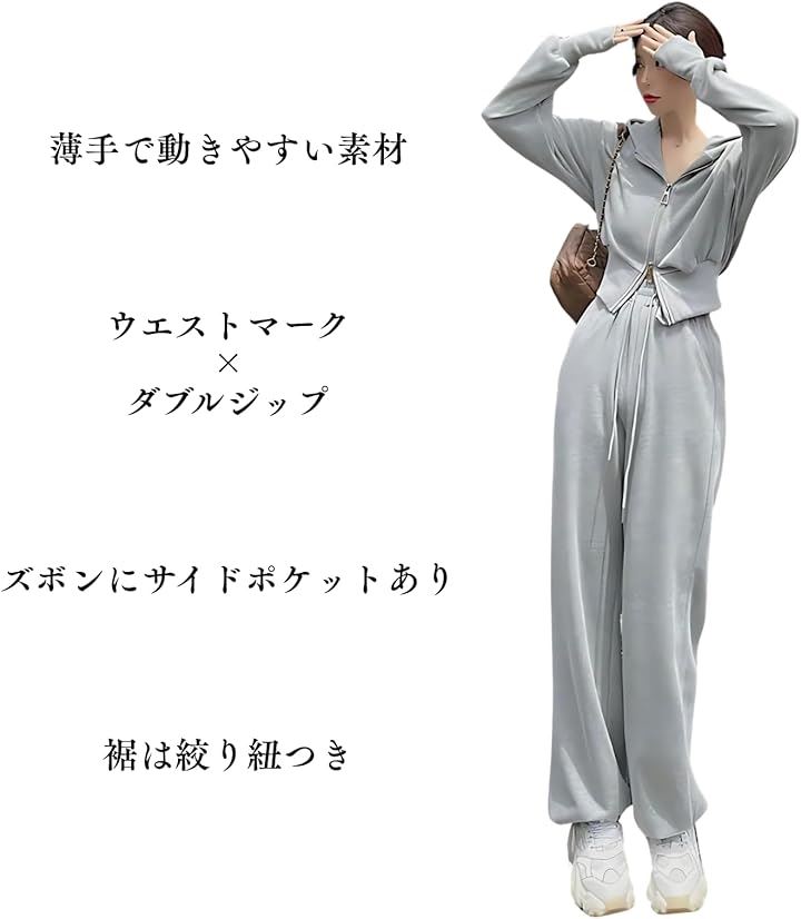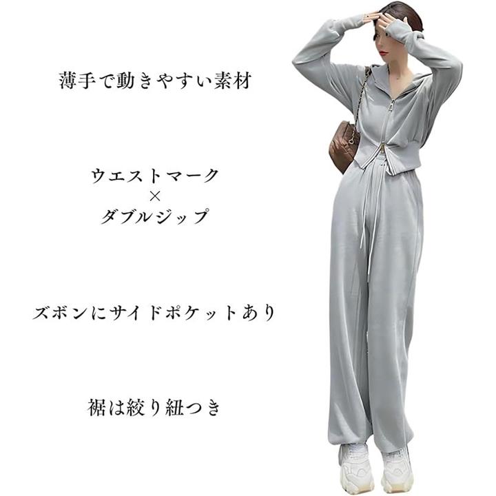 レディース セットアップ ジャージ 上下 ルームウェア ダブルジップ ドロスト 裾絞り ドローストリング 薄手 おしゃれ フード スウェット 上下セット ウエストゴム 部屋着 かわいい フード付き 韓国 カジュアル 可愛い お洒落 パジャマ コーデ