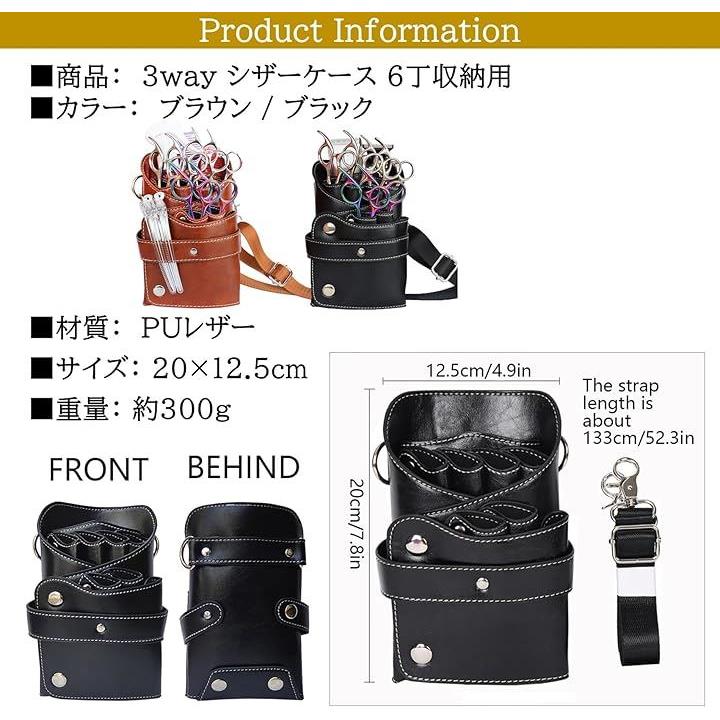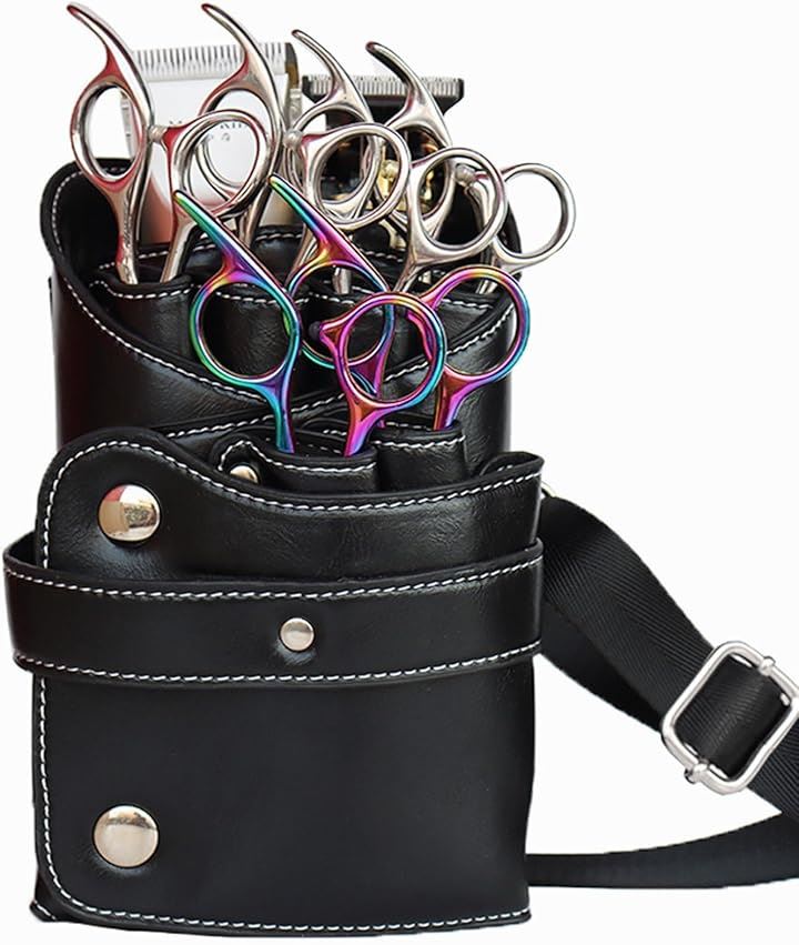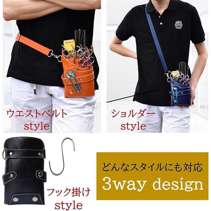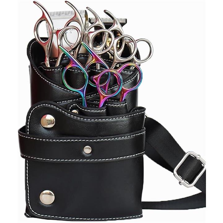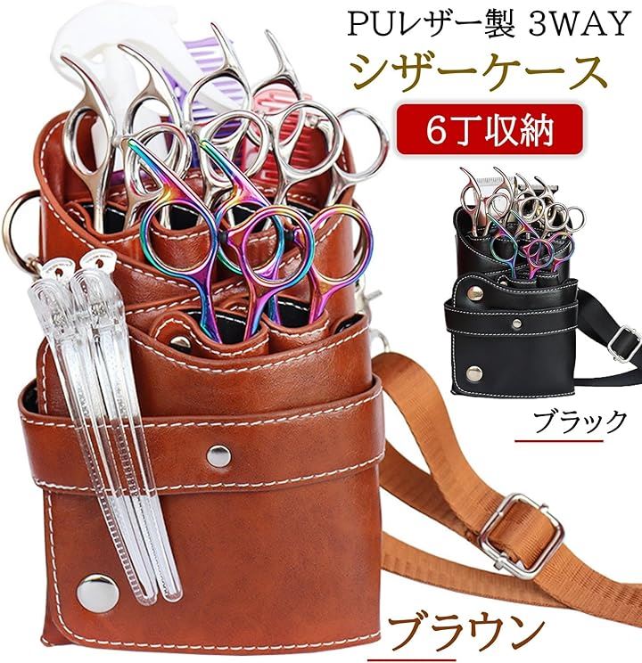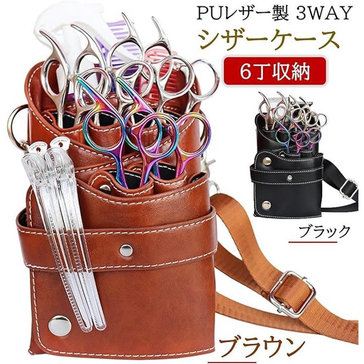 シザーケース 美容師 トリマー 6丁 プロ PUレザー ベルト付き シザーバッグ 肩掛け 腰掛け