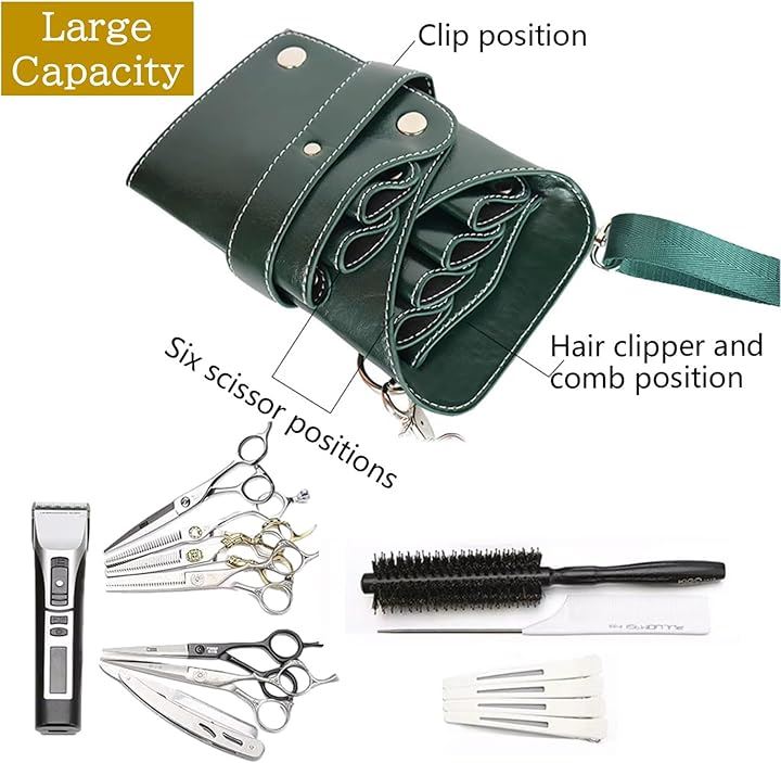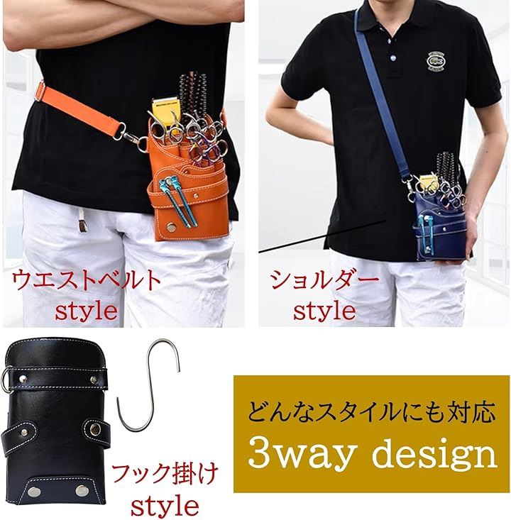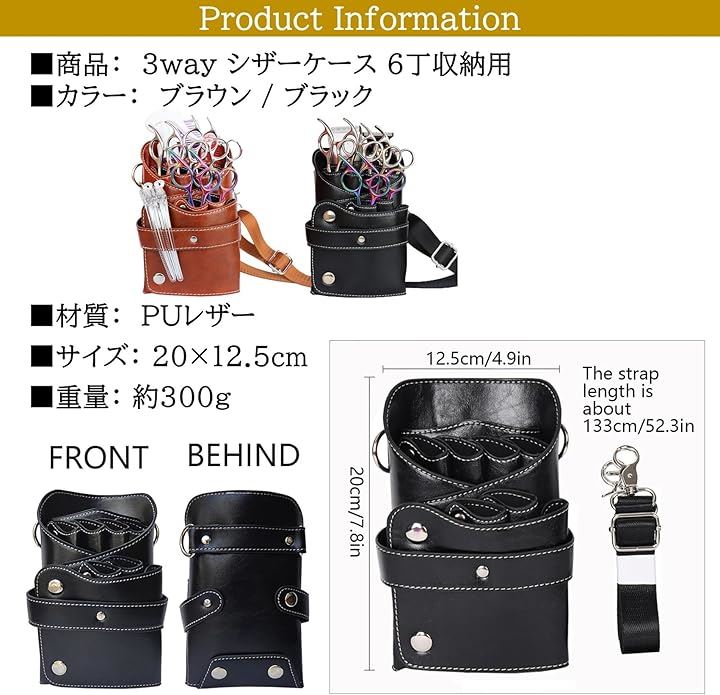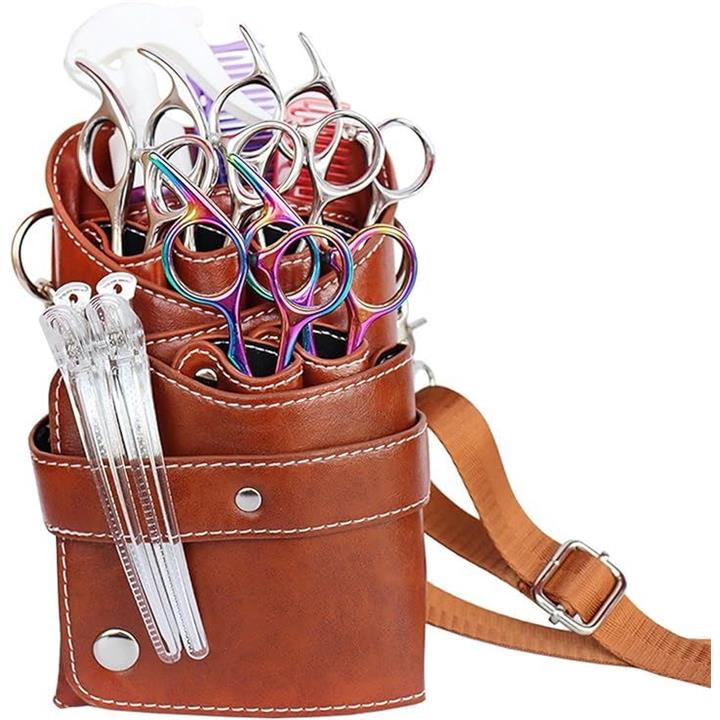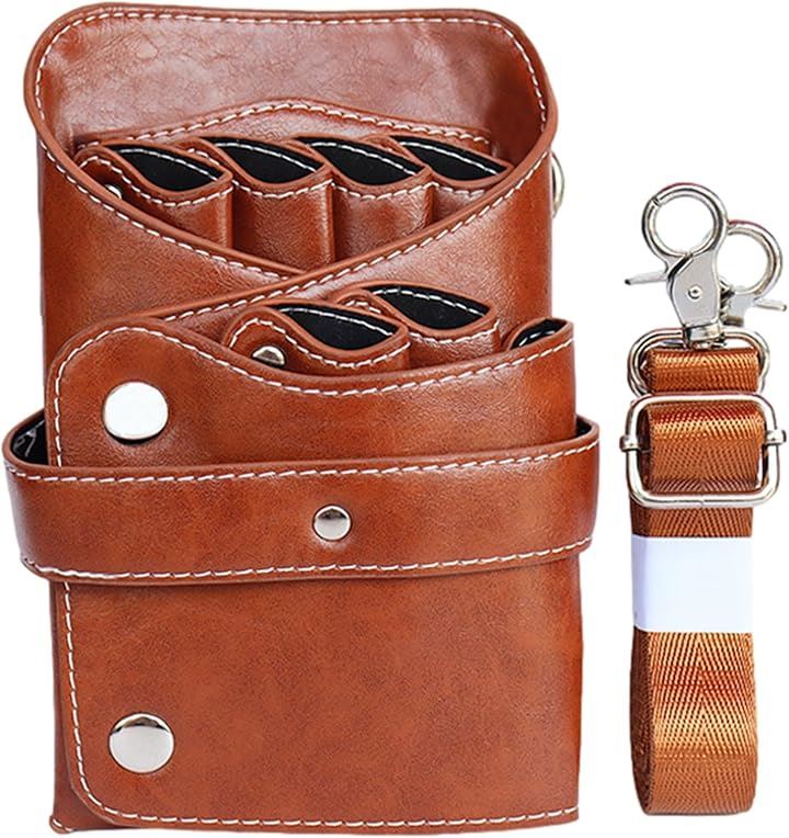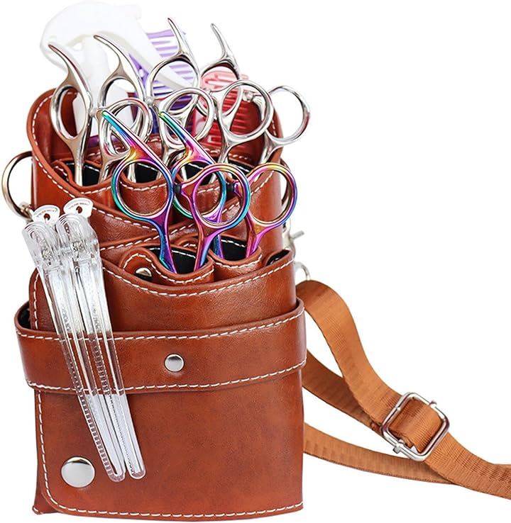 シザーケース 美容師 トリマー 6丁 プロ PUレザー ベルト付き シザーバッグ 肩掛け 腰掛け