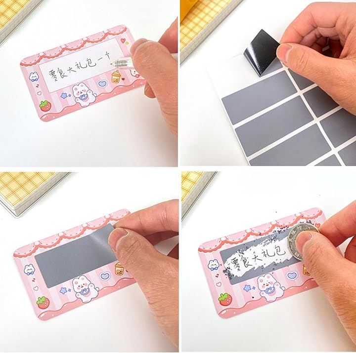 スクラッチカード 削るシール スクラッチシール あたり付きカード 可愛い 100セット 韓国風 ins イラスト 銀色のシール くじ引き 抽選券 パーティー イベント スクラッチくじ 自作