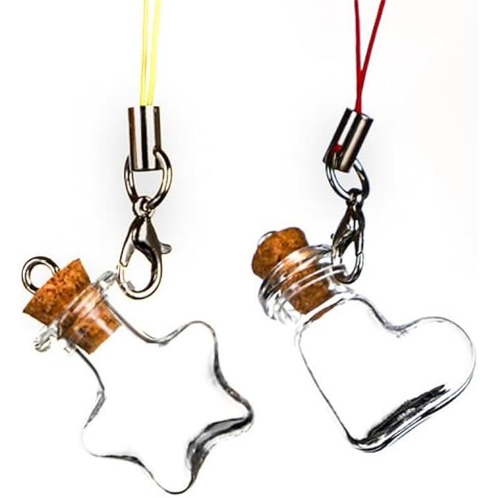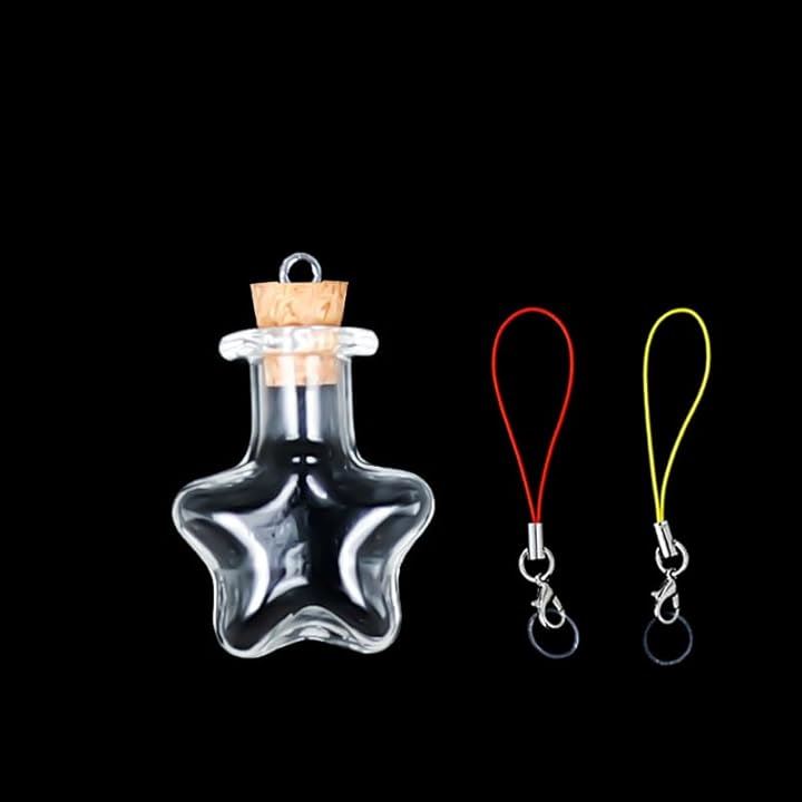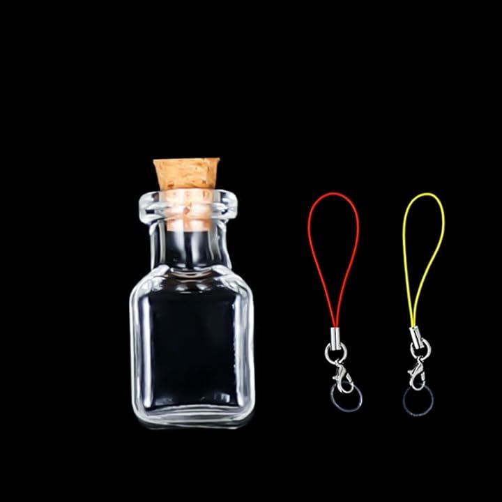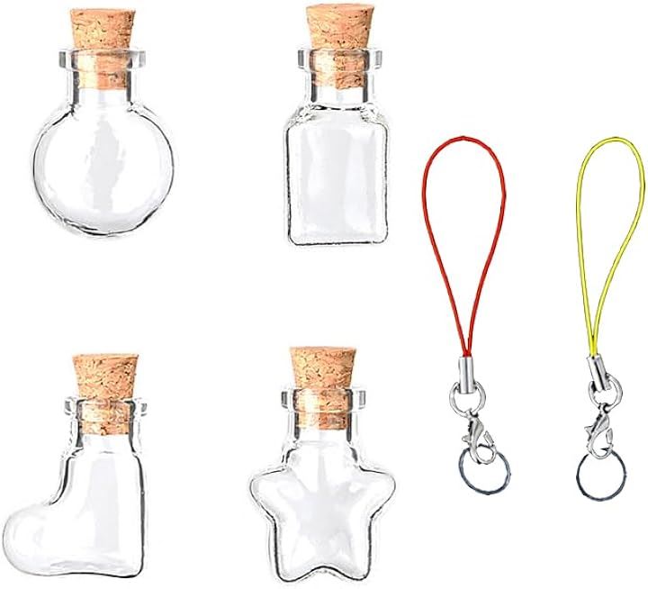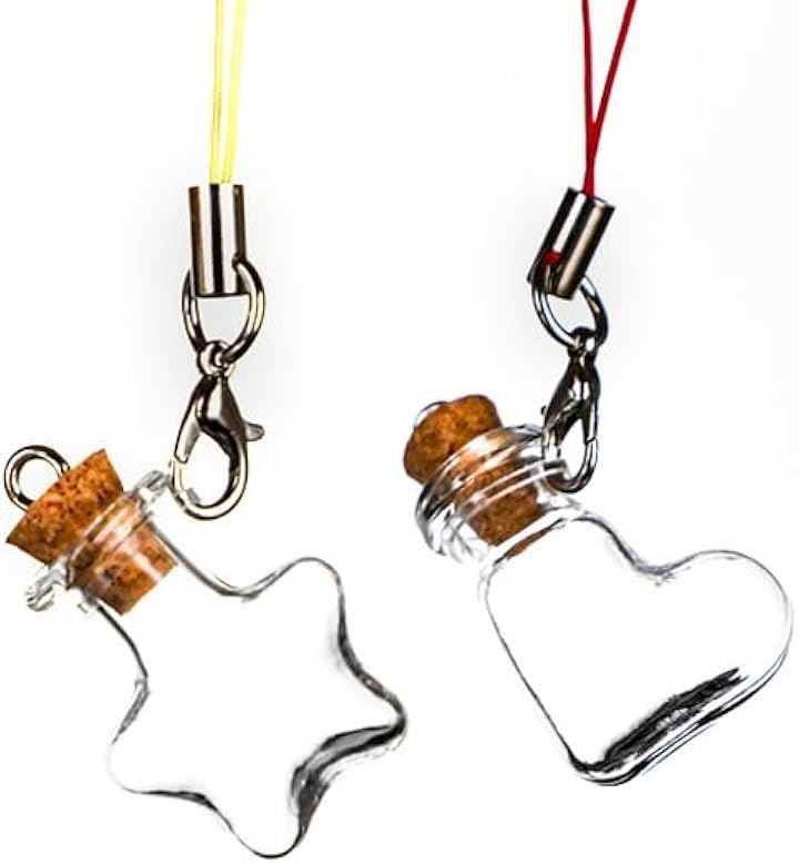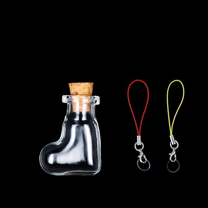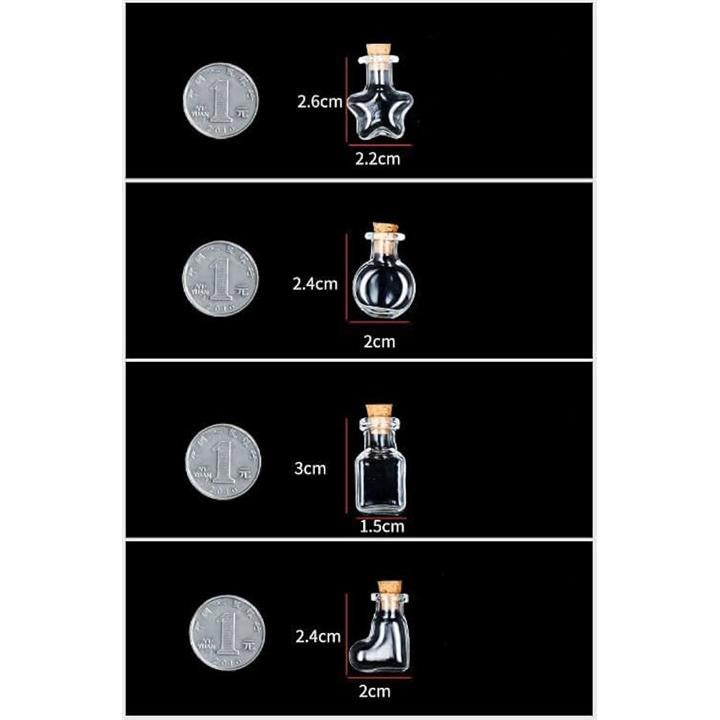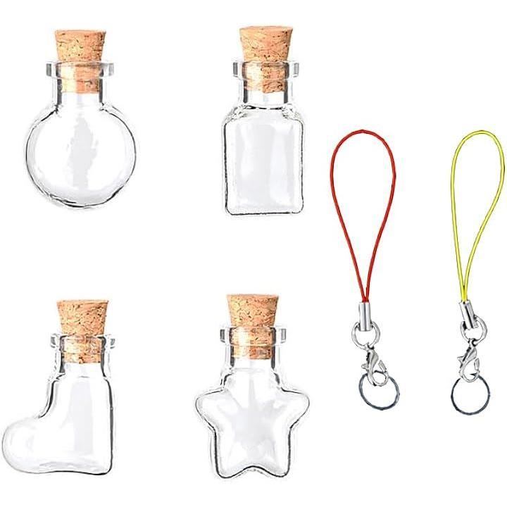 ガラス瓶 ミニ 20個セット 4デザイン各5個入り コルク栓+ストラップ付き メッセージボトル