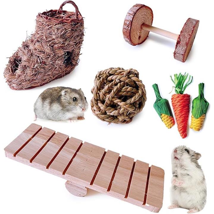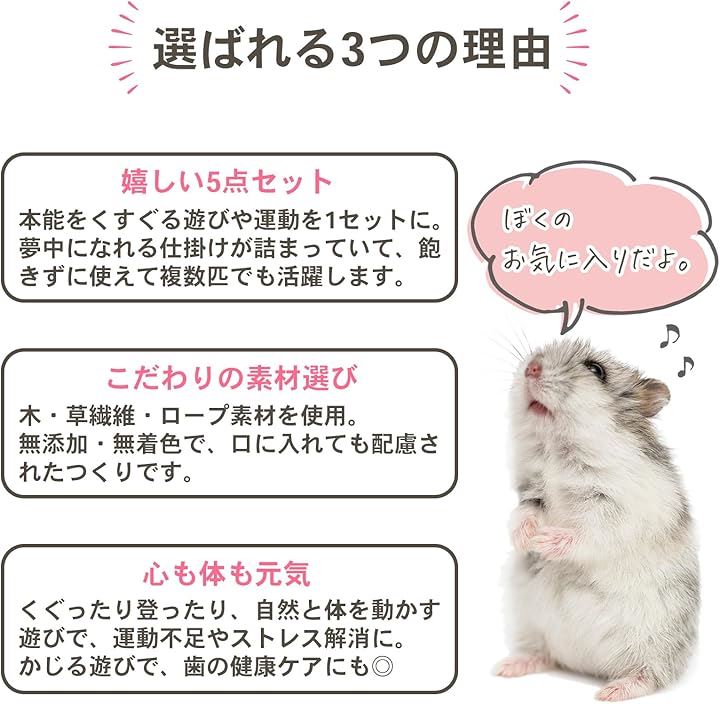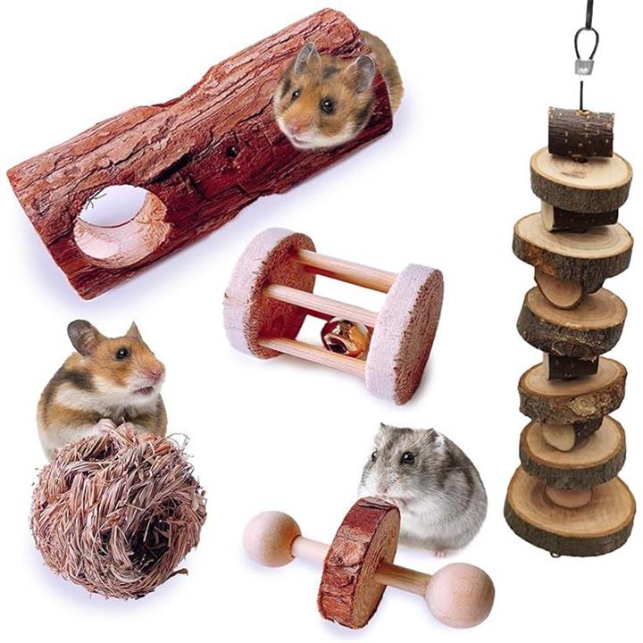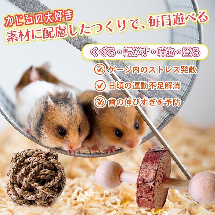 ハムスター 木製 おもちゃ 5点 セット かじり木 ボール ローラー 噛む 運動 小動物 知育 玩具
