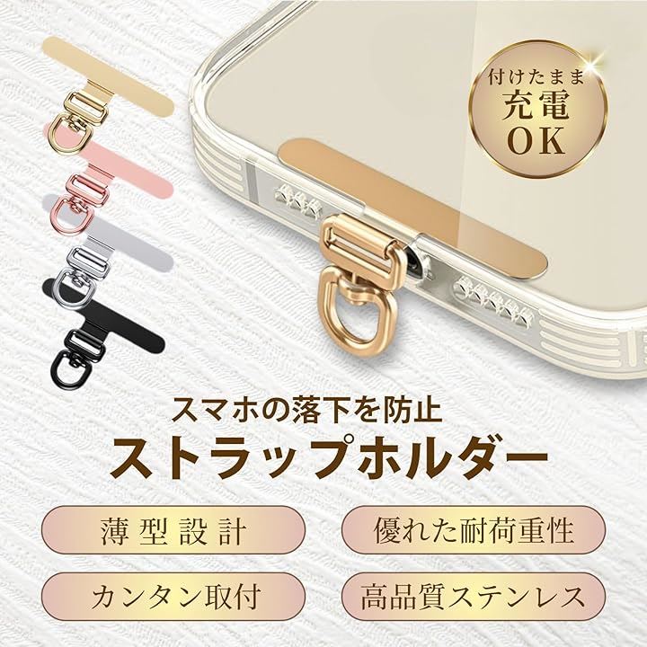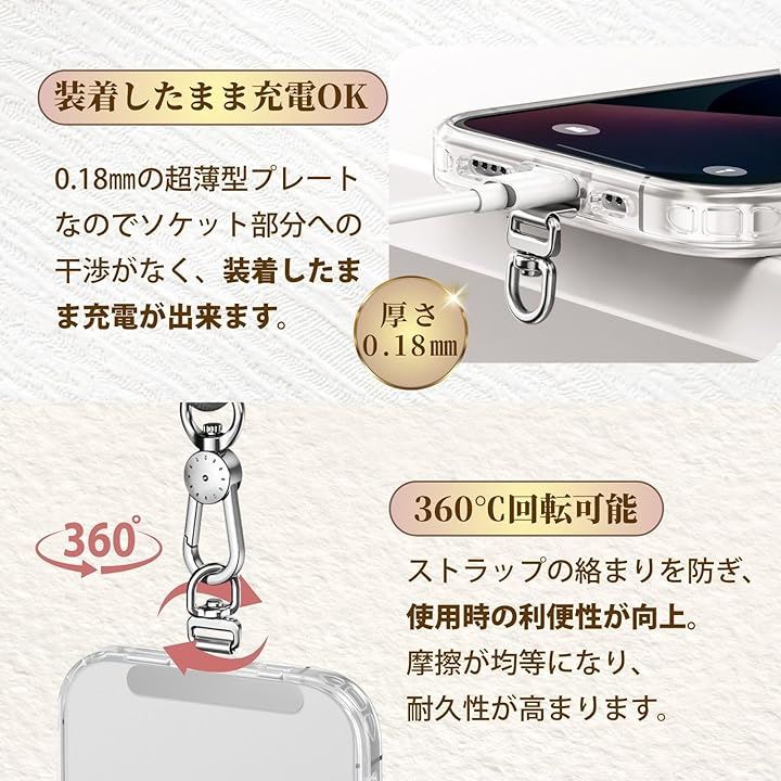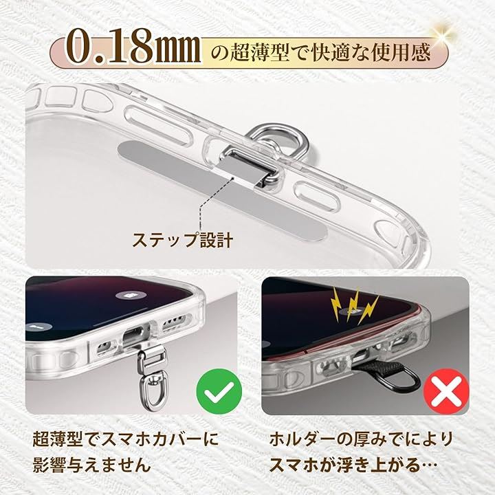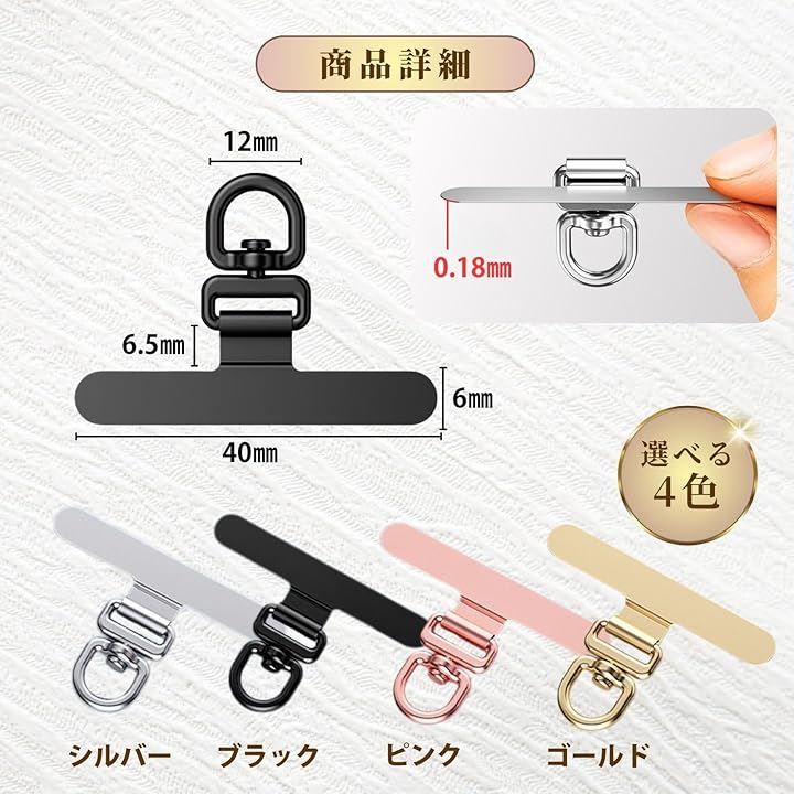 スマホストラップ スマホショルダー ストラップホルダー 2枚セット 薄型0.18mm 360°回転 金属製 タグパッチ ステンレス 頑丈 全機種対応 落下防止 肩掛け