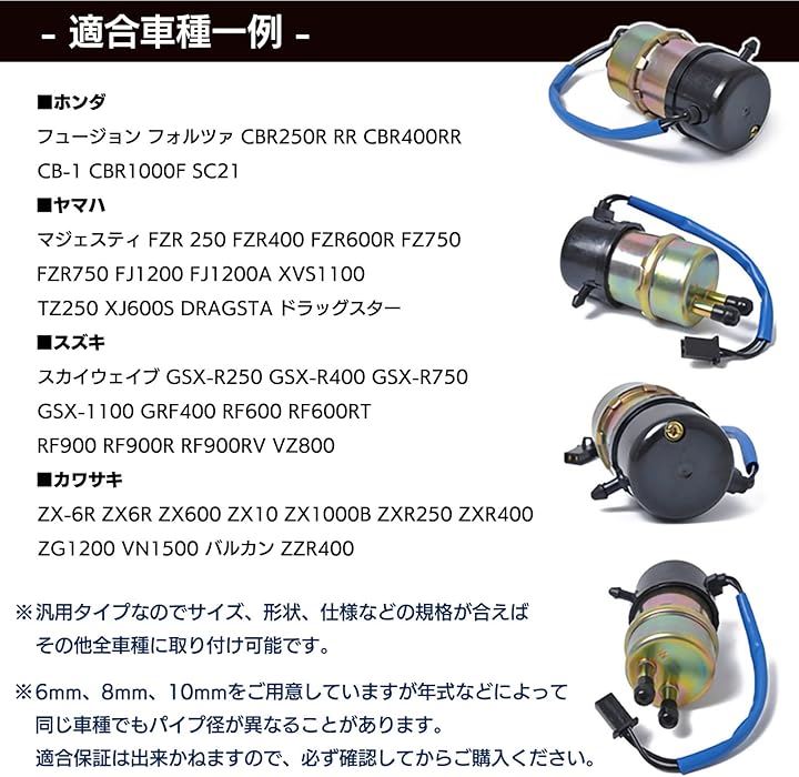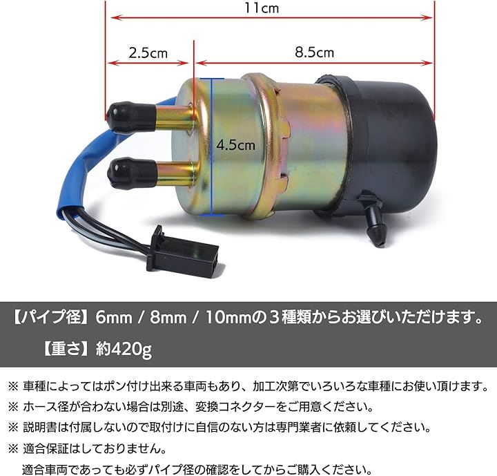 互換品 燃料ポンプ フューエルポンプ ガソリンポンプ バイク オートバイ キャブレター 12V 交換 補修 修理 汎用