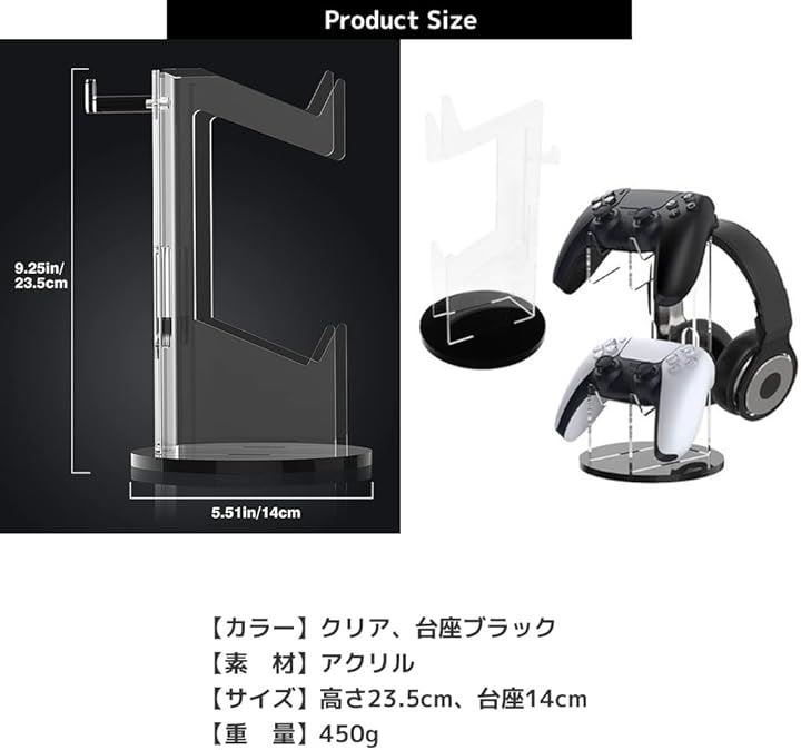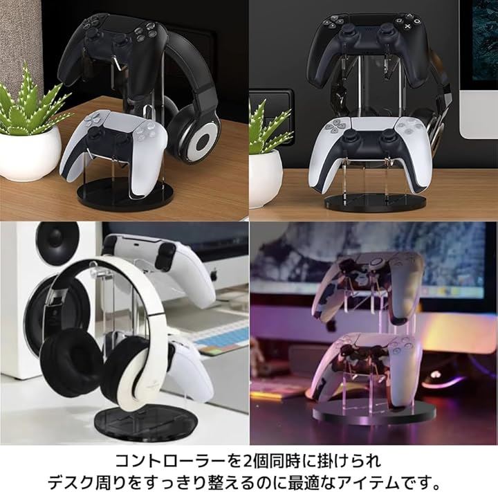 コントローラー ヘッドホンハンガー スタンド ラック アクリル 卓上 2個 収納 省スペース
