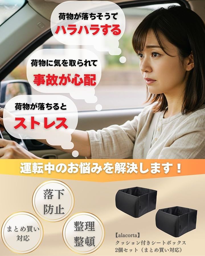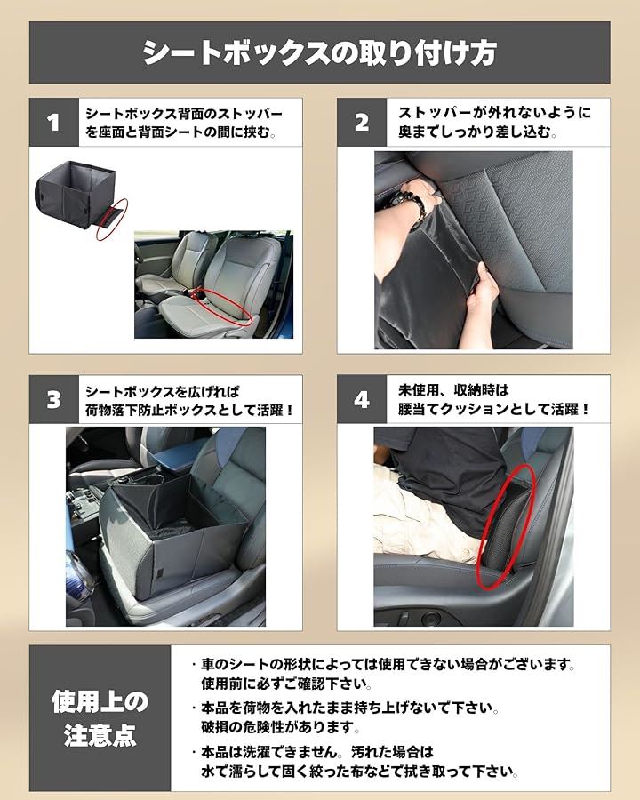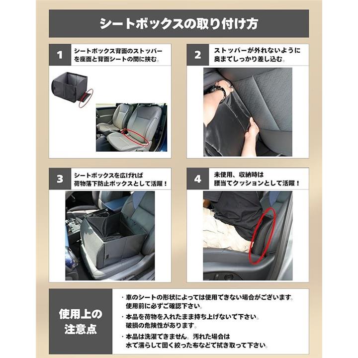 シートボックス 助手席 後部座席 荷物入れ 車 収納 拡張アイテム お買い物・荷物の落下防止 ブレーキ・カーブでも安心 運転に集中できる 畳んで腰当てクッションとしても使えるまとめ買い対応 車内の整理整頓 簡単取付