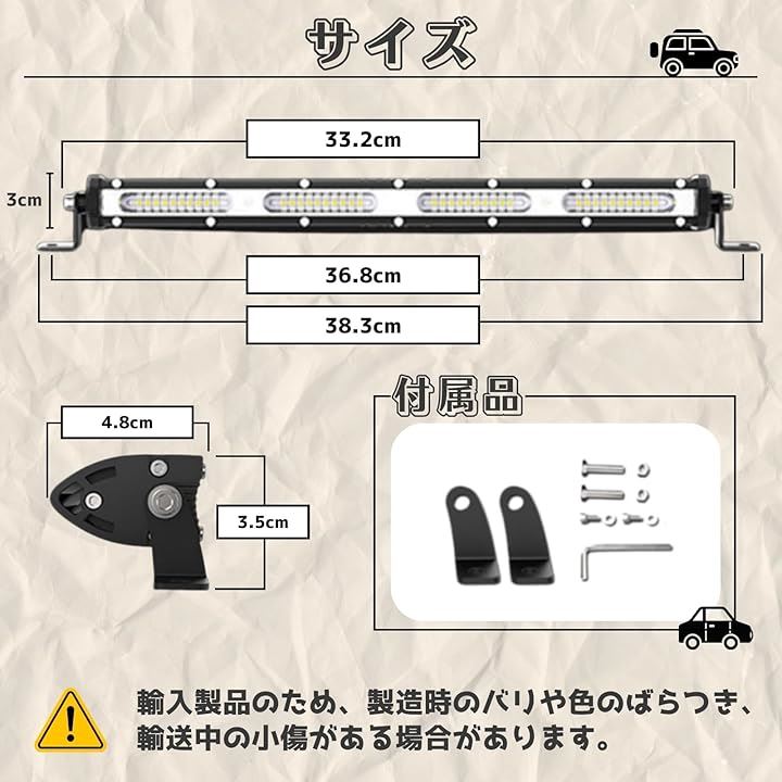 ワークライト 作業灯 LED バーライト デイライト 12V 24V 120W 13インチ