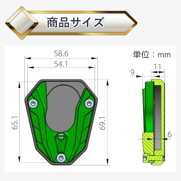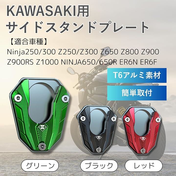 互換品 バイク サイドスタンド プレート アルミニウム製 Kawasaki用 Ninja250/300 Z250/Z300 Z650 Z800 Z900 Z900RS Z1000 NINJA650/650R ER6N ER6F 対応
