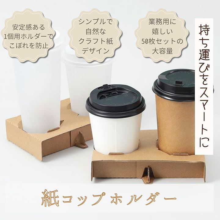 カップホルダー ドリンクホルダー テイクアウト 持ち歩き 紙製 使い捨て 50枚セット