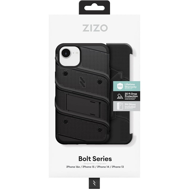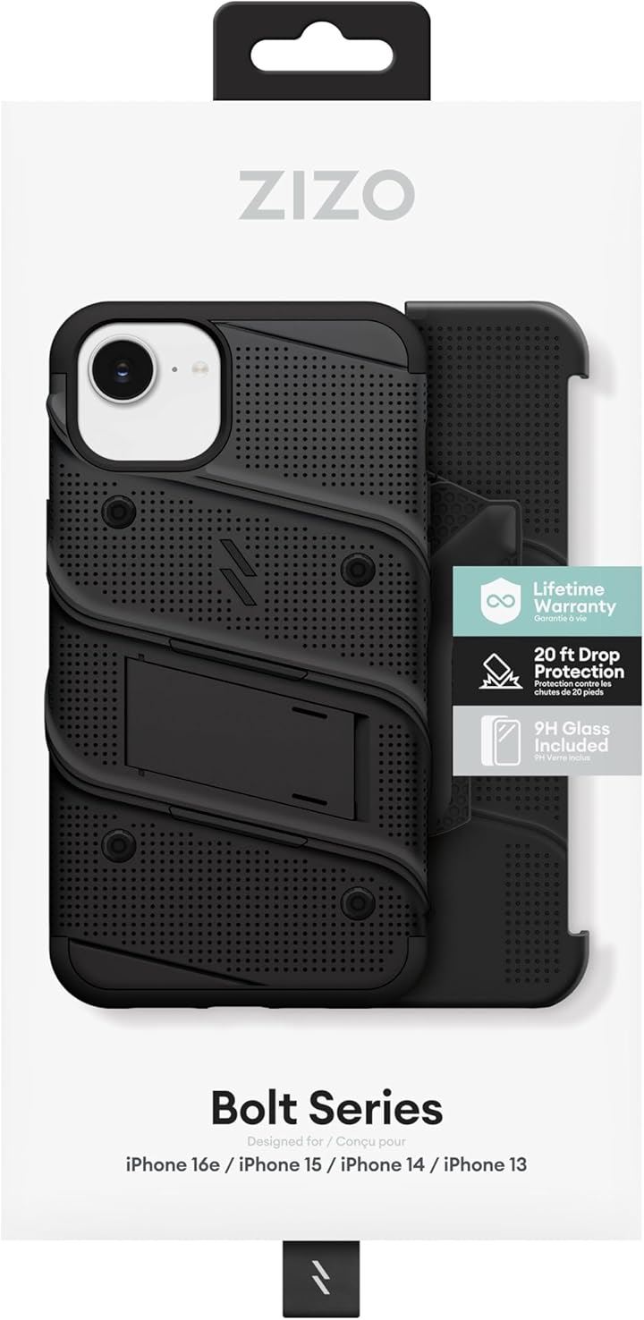ZIZOiPhone 16e/13/14/15 用 ケース MagSafe対応 米軍MIL規格 516.6落下テスト済 耐衝撃 360度保護 強化ガラス/キックスタンド/ホルスター/ランヤード付属