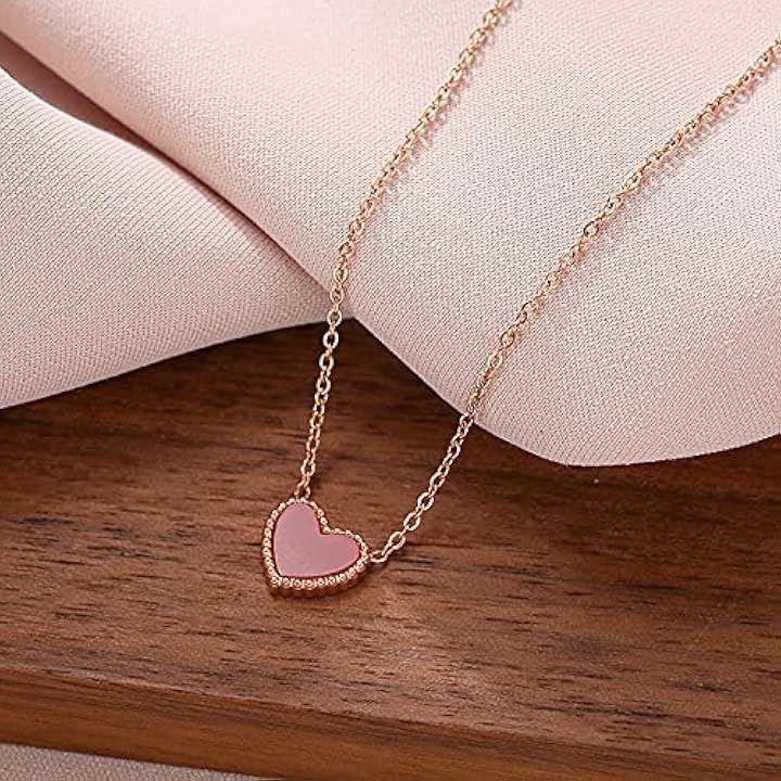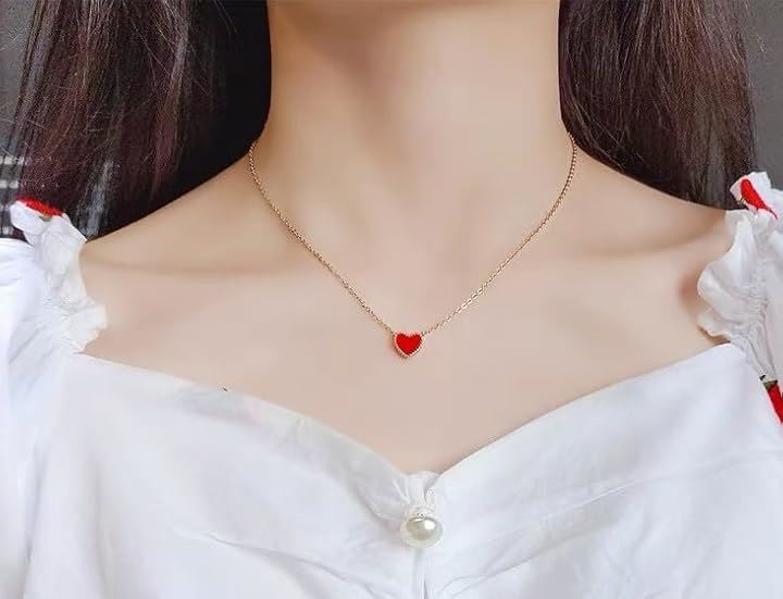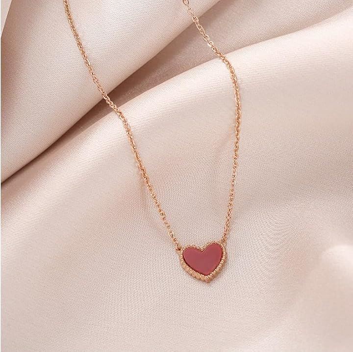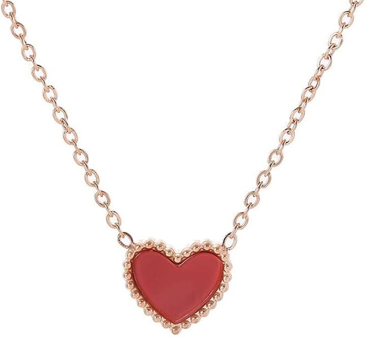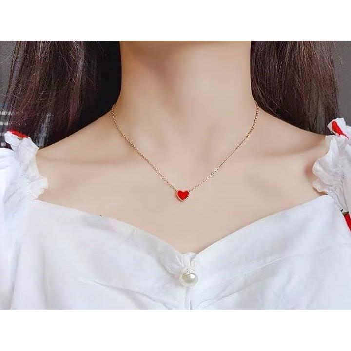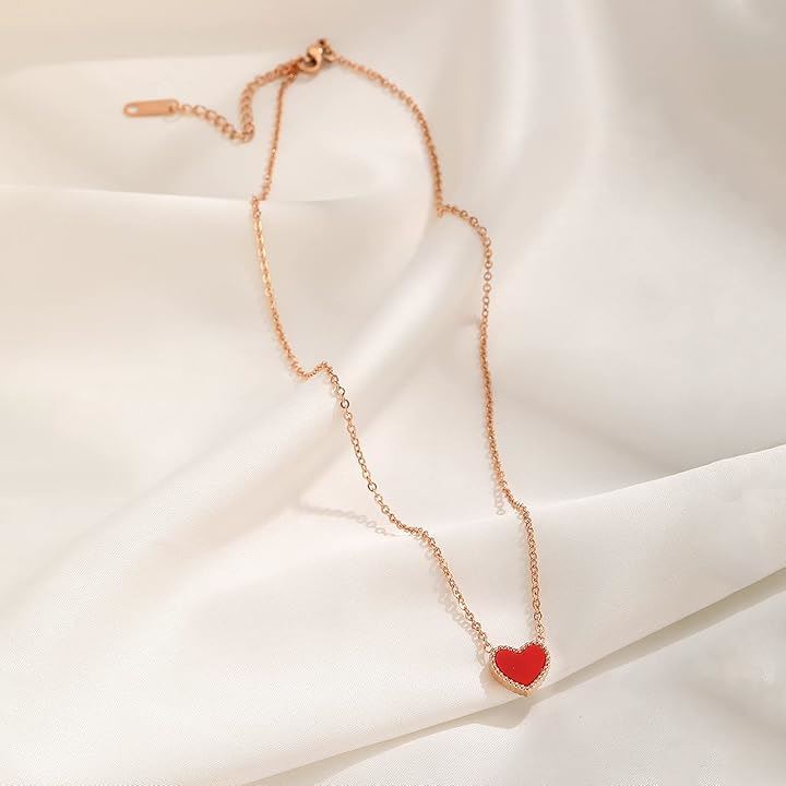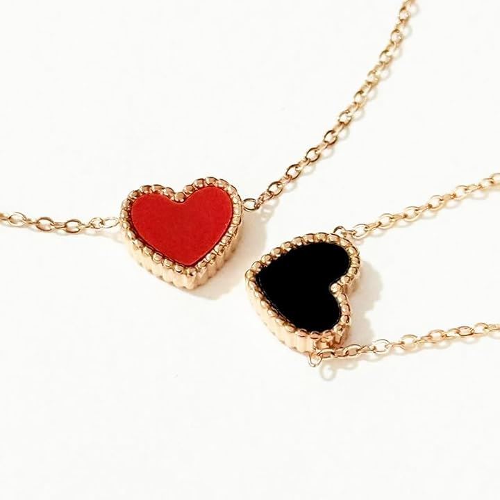 ハートネックレス ワンポイント 赤 黒 ピンクゴールドチェーン ステンレス 一粒 かわいい レディース