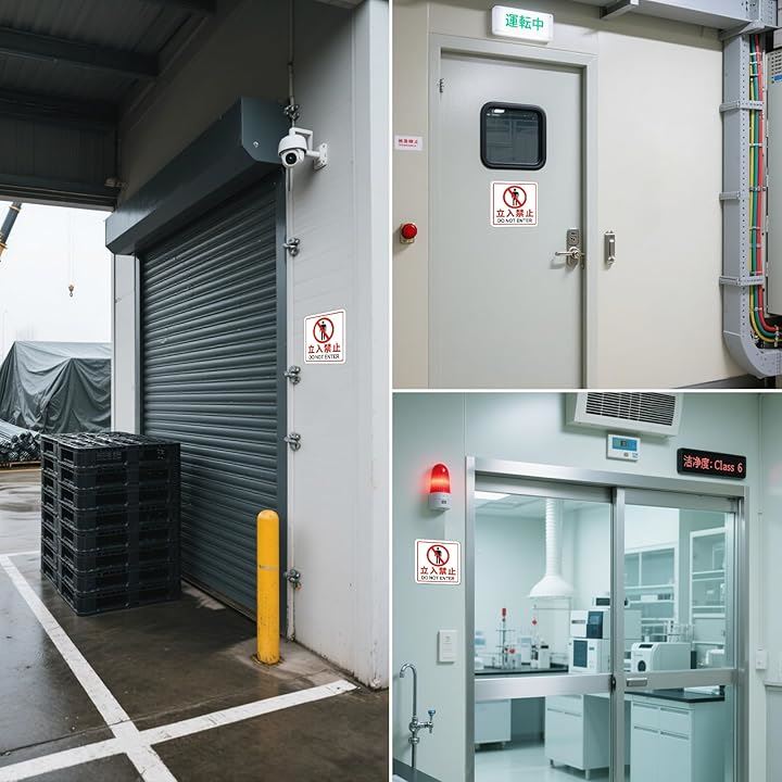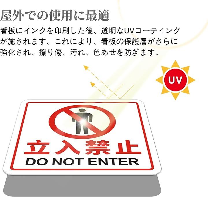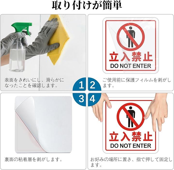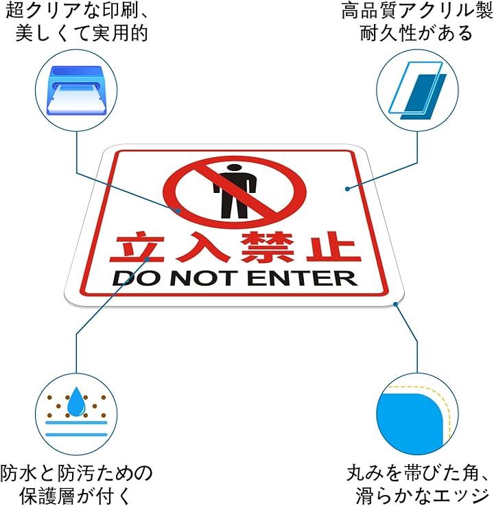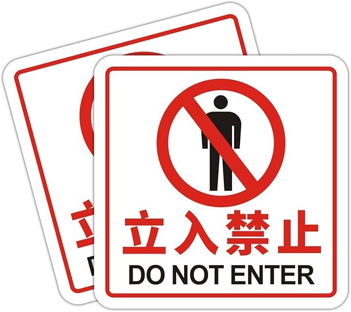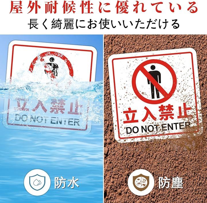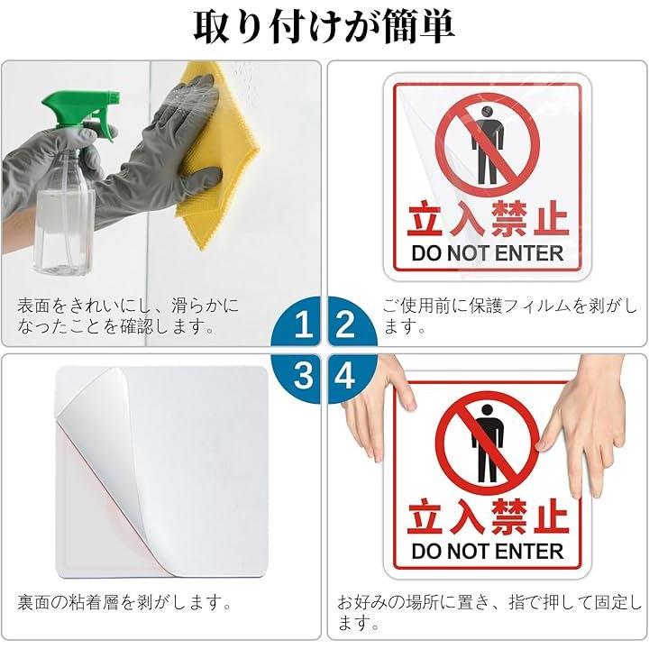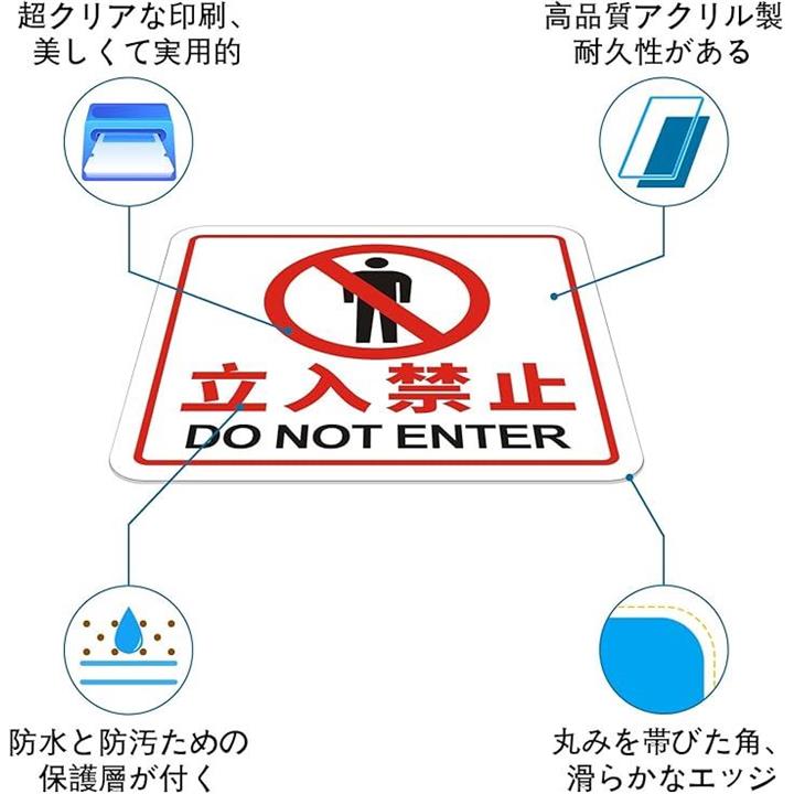 立入禁止 看板 進入禁止 警告プレート サインプレート ステッカー 標識 12x12cm アクリル製 取付簡単 UV印刷 防水 屋内外両用 2枚入り