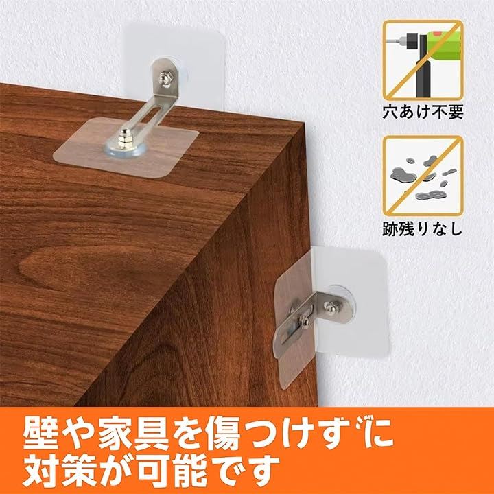 家具 転倒防止 金具 穴開け不要 地震対策 8個セット