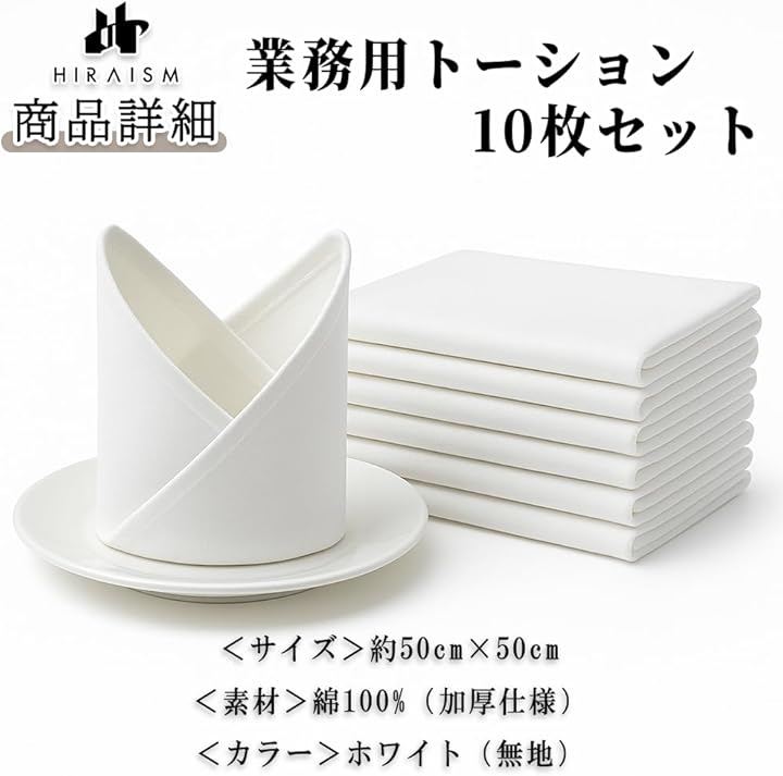 業務用 トーション テーブルナプキン 厚手 綿100% ホワイト 50x50cm 10枚セット レストラン ホテル