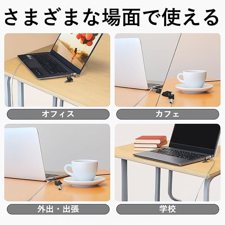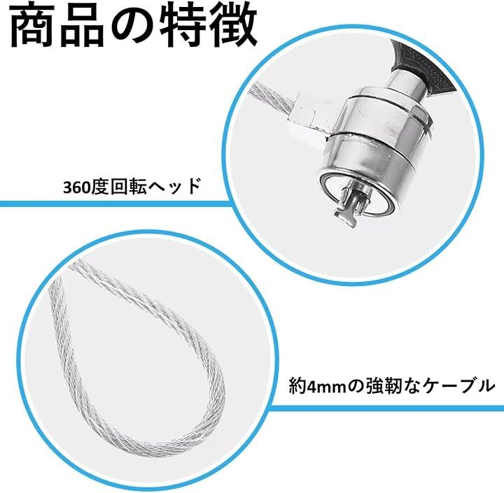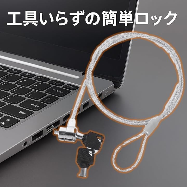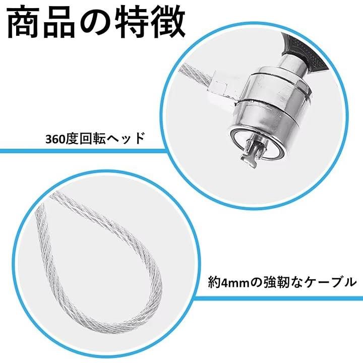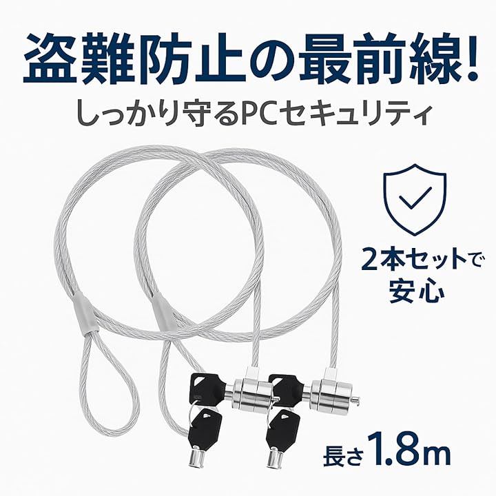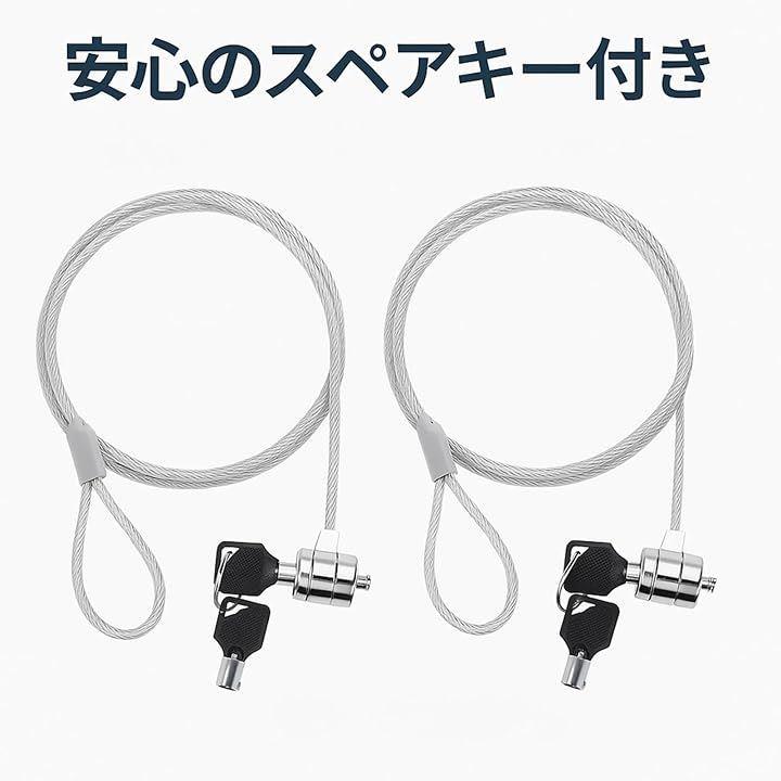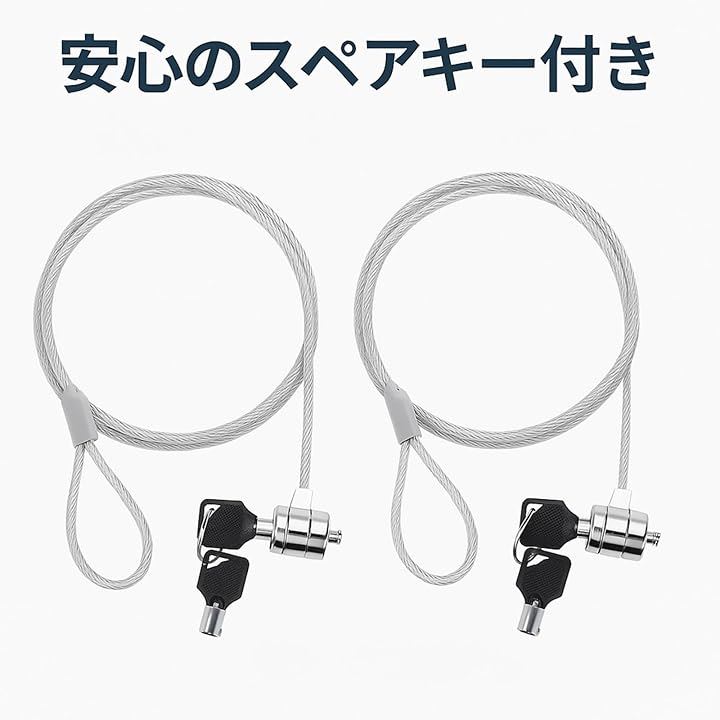 ワイヤーロック セキュリティワイヤー 1.8m 2個セット スペアキー付 防犯用