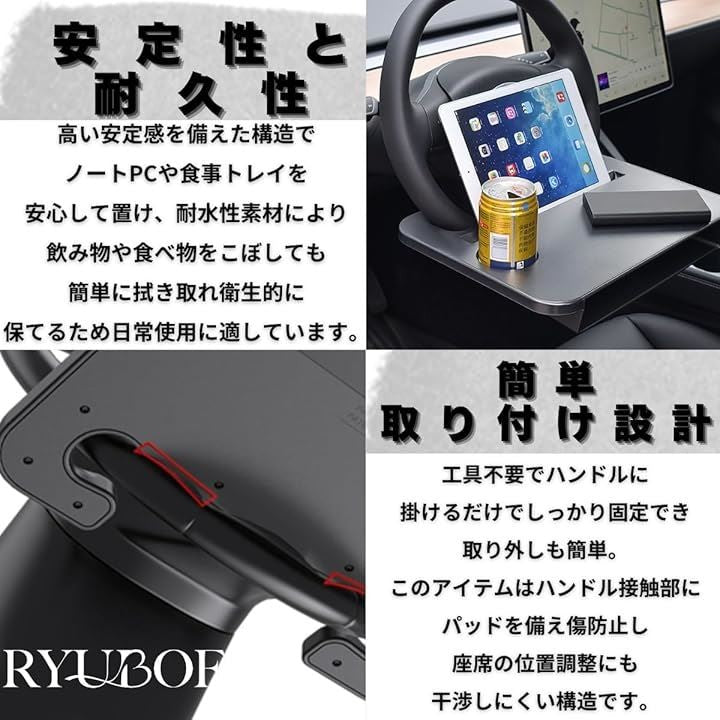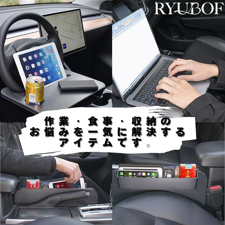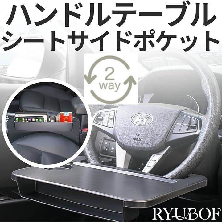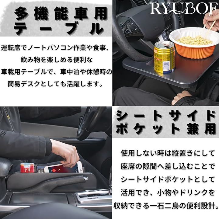 車 ハンドルテーブル シートサイドポケット 車用トレイ ドリンクホルダー付き 食事用 デスク ノートパソコン対応 車載テーブル 収納ポケット 取り付け簡単 車中泊 運転席用 簡易テーブル 自動車アクセサリー