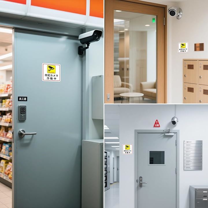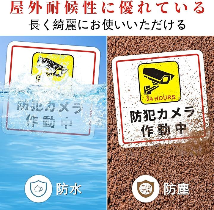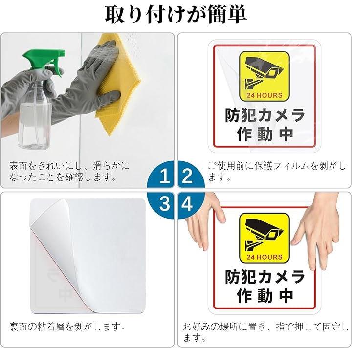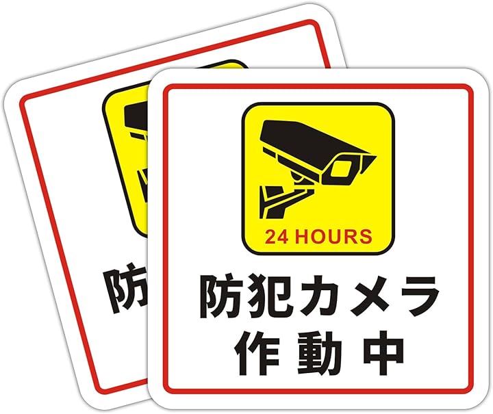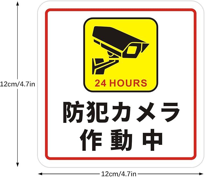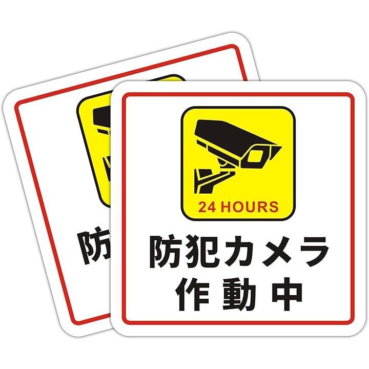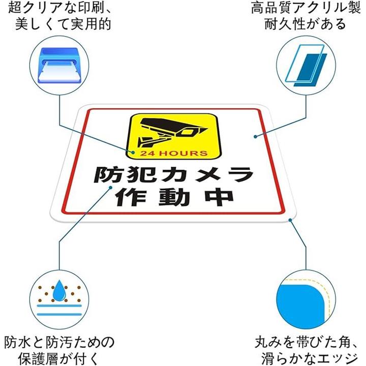 防犯カメラ作動中 看板 監視カメラ作動中 警告プレート サインプレート ステッカー 標識 12x12cm アクリル製 取付簡単 UV印刷 防水 屋内外両用 2枚入り